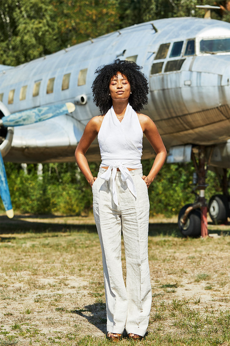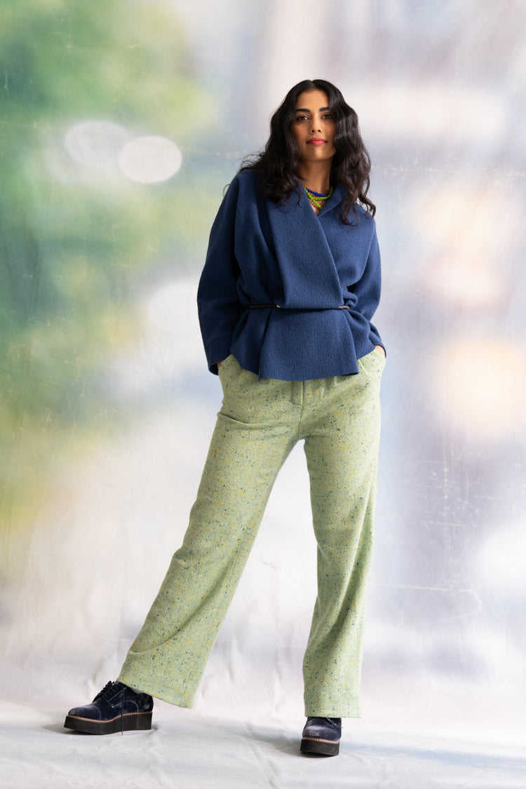 Middleweight fabrics made of linen, but also twill or gabardine made of cotton, blends or wool.