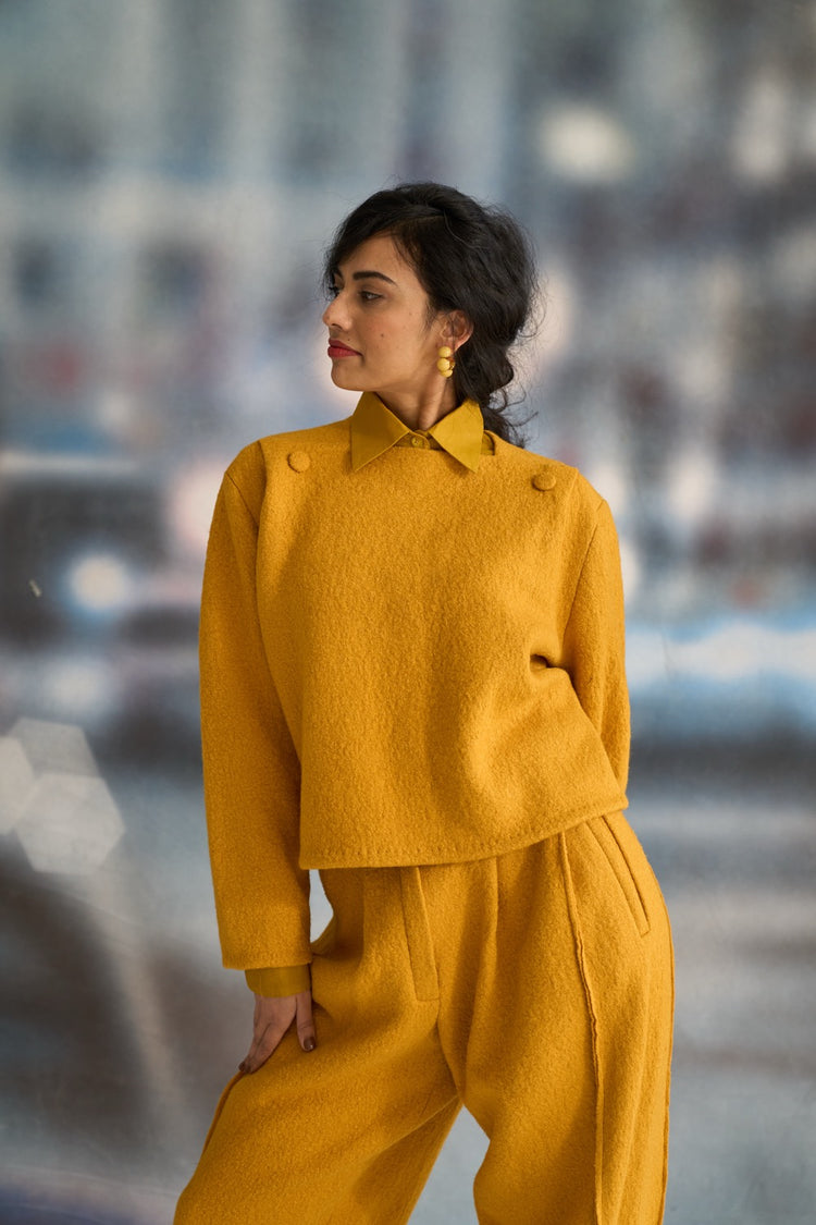 70-16 EMBER Comfortable melton wool sweater with slight bubble sleeves