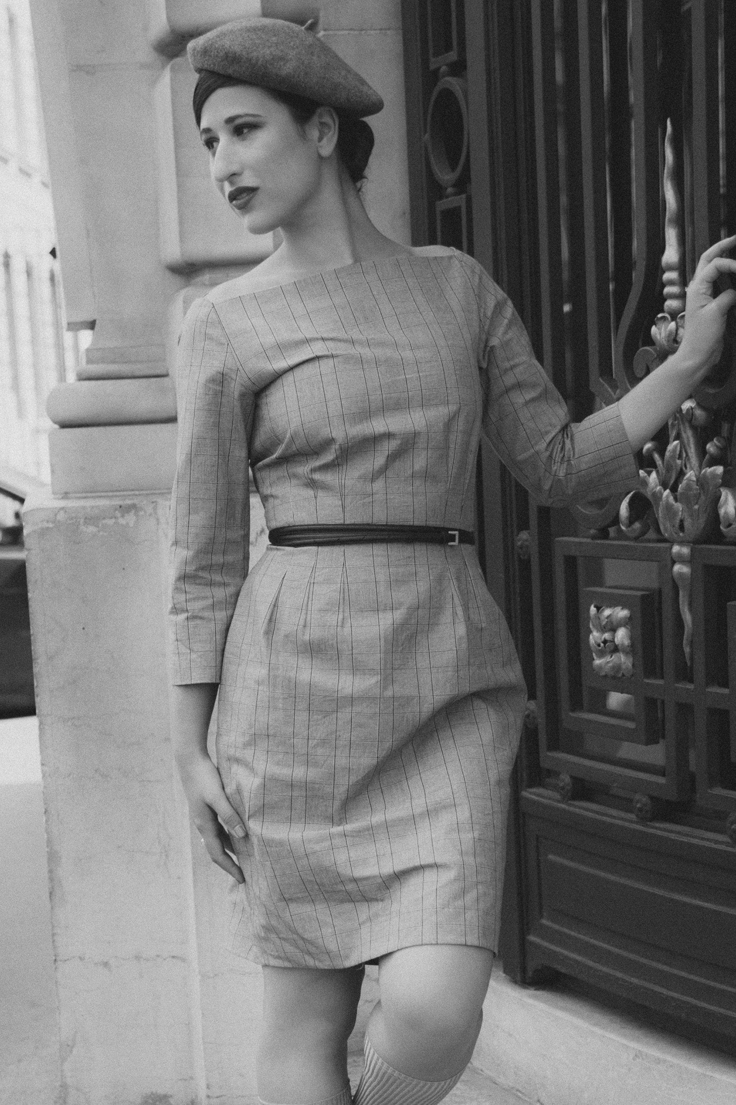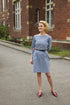Introducing 09-2 which stands for elegance and modern sophistication. This hourglass dress features a high boat neckline that gracefully accentuates the collarbones, exuding chic refinement. Seam pockets add both practicality and subtle flair, seamlessly blending functionality with style.