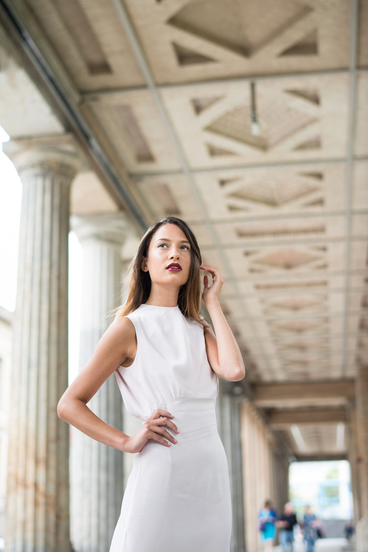 Introducing a show-stopping piece for your special night: the DIY Slender Ball Gown with Back Slit. Crafted for the modern woman with an eye for timeless elegance and a passion for fashion, this elegant design features a slim silhouette, a pleated bodice and an eye-catching back slit. The stunning silhouette ensures you make a statement at any party or event. The zipper accentuates the waist. A classy dress for sewing beginners. Timeless elegance paired with flowing fabric.
