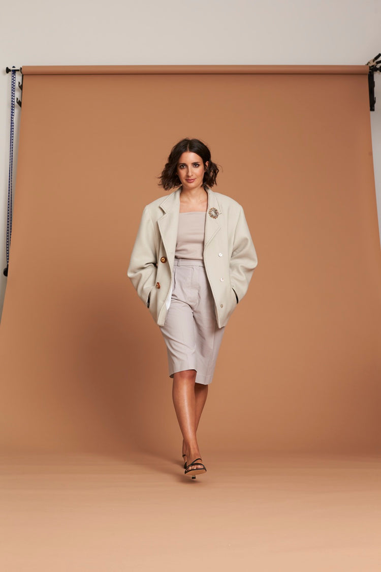 Oversized jacket with wide shoulders, embroidered at the seams. Whether you choose to hand-paint canvas fabric or use an elegant wool fabric - this jacket will be your statement piece! Special detail: the sleeves have a sewn-in fold that makes for a special silhouette.