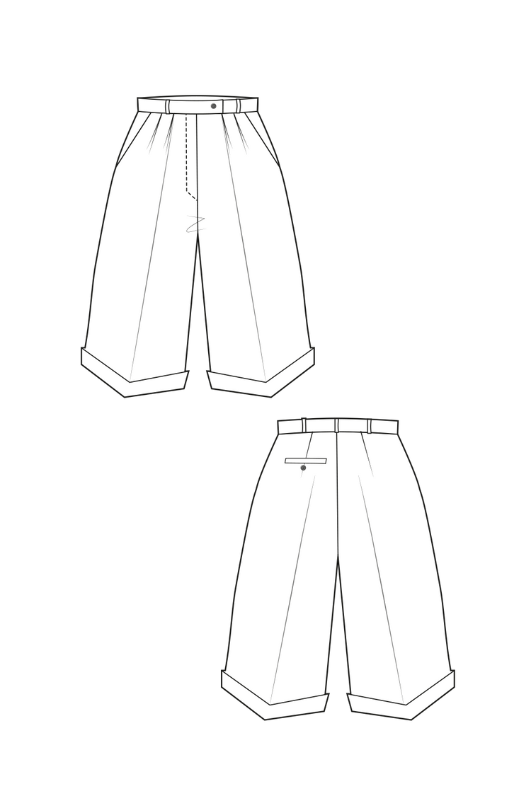 59-3 Comfy elegant pleated shorts (**) – print-at-home sewing pattern