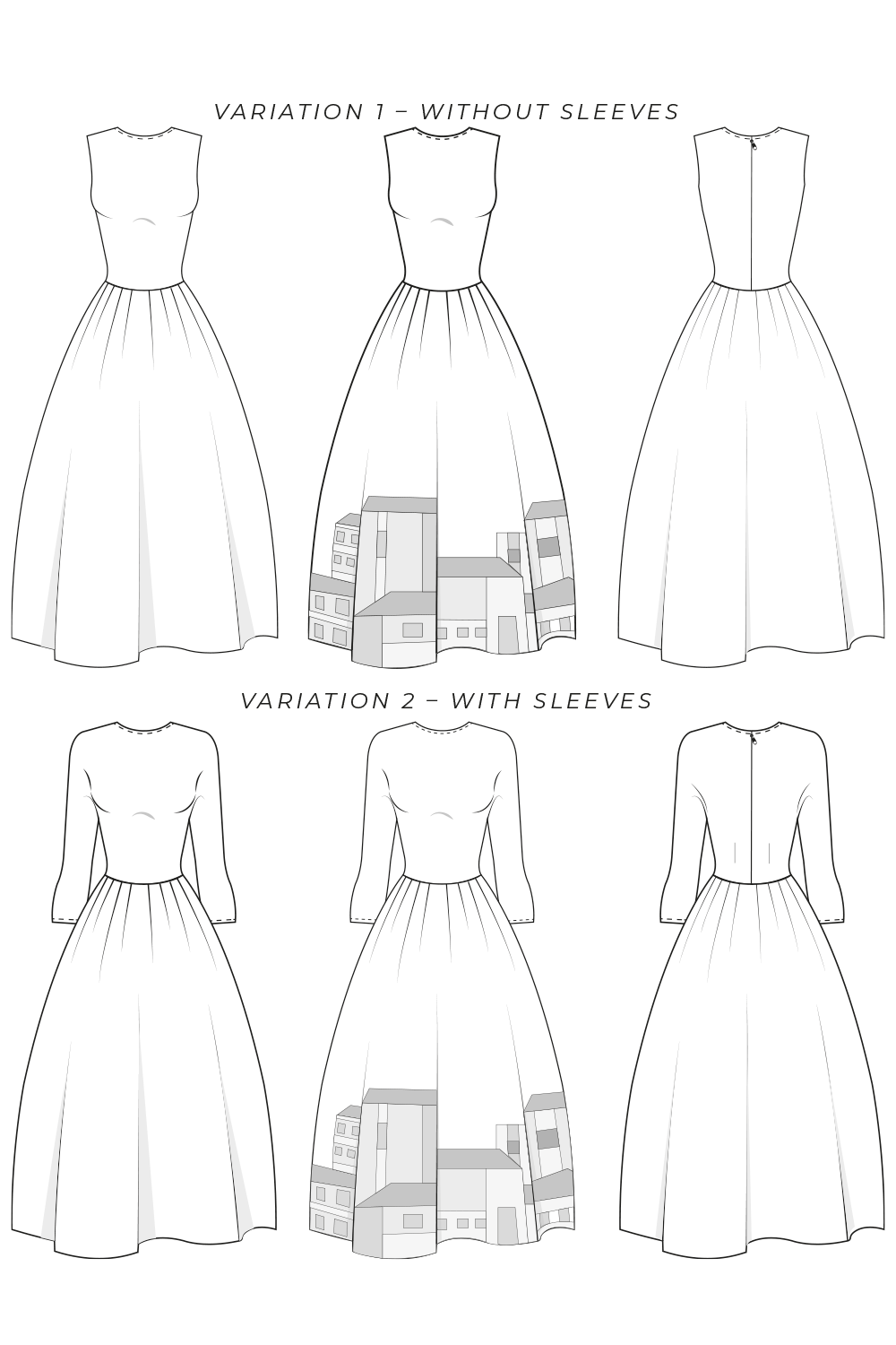 The SKYLINE dress is designed for ultimate comfort and effortless style, perfect for any casual day or relaxed outing. This easy-to-make dress features a simple silhouette that can be sewn in two variations: with or without sleeves – this dress offers flexibility and is perfect for any fabric with some stretch, like jersey or knit.