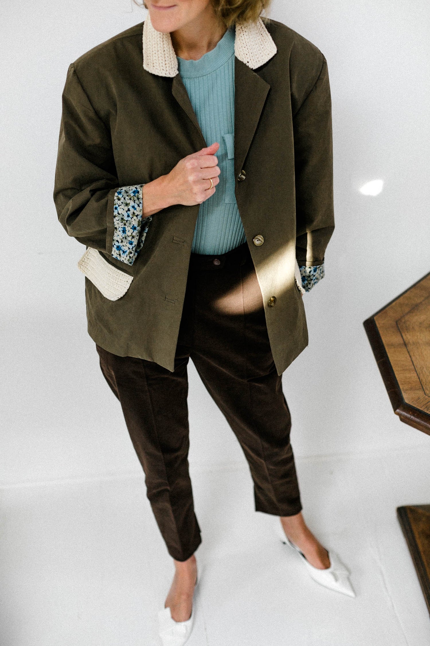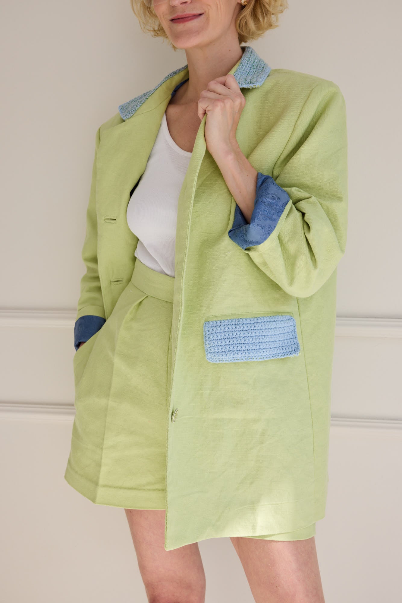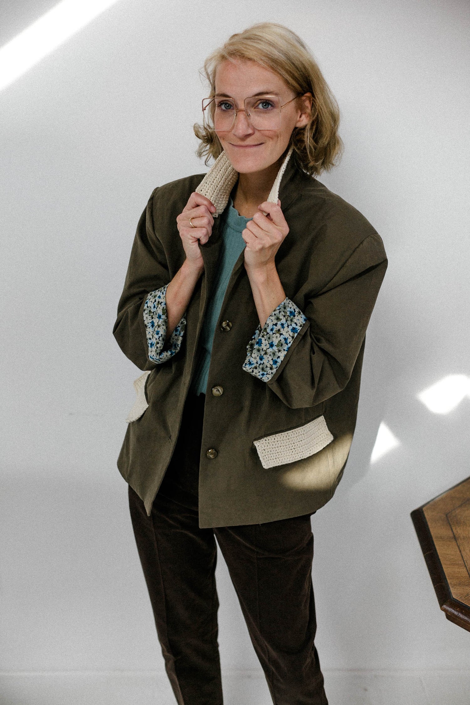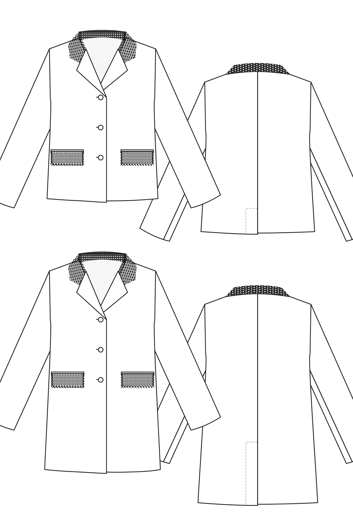 The jacket pattern comes in two lenghts with one being almost a mini coat blazer.