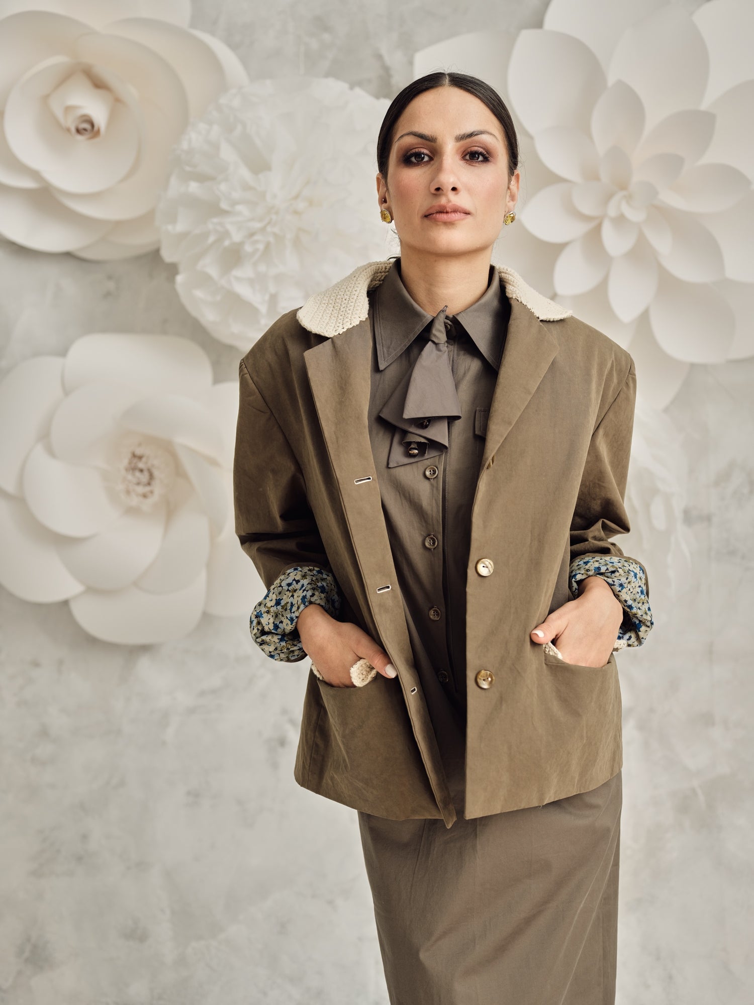 Fall in love with this meticulously crafted 68-5 Transitional Jacket, the perfect blend of style and comfort. he highlight of this must-have fashion item is the finely crocheted collar and flap pockets that adds a touch of DIY to your attire.