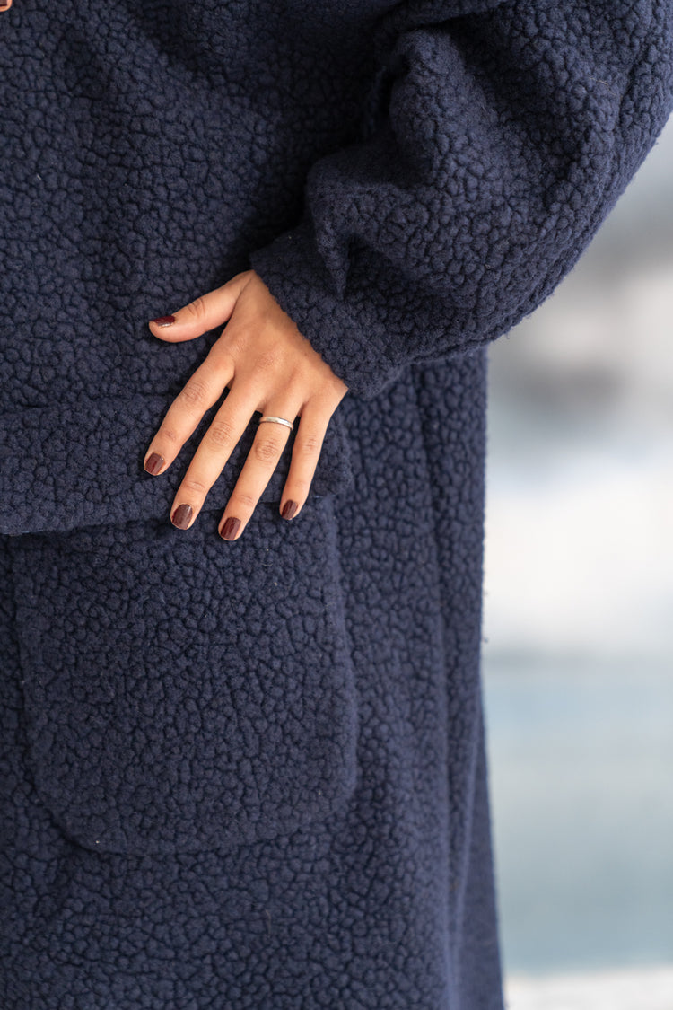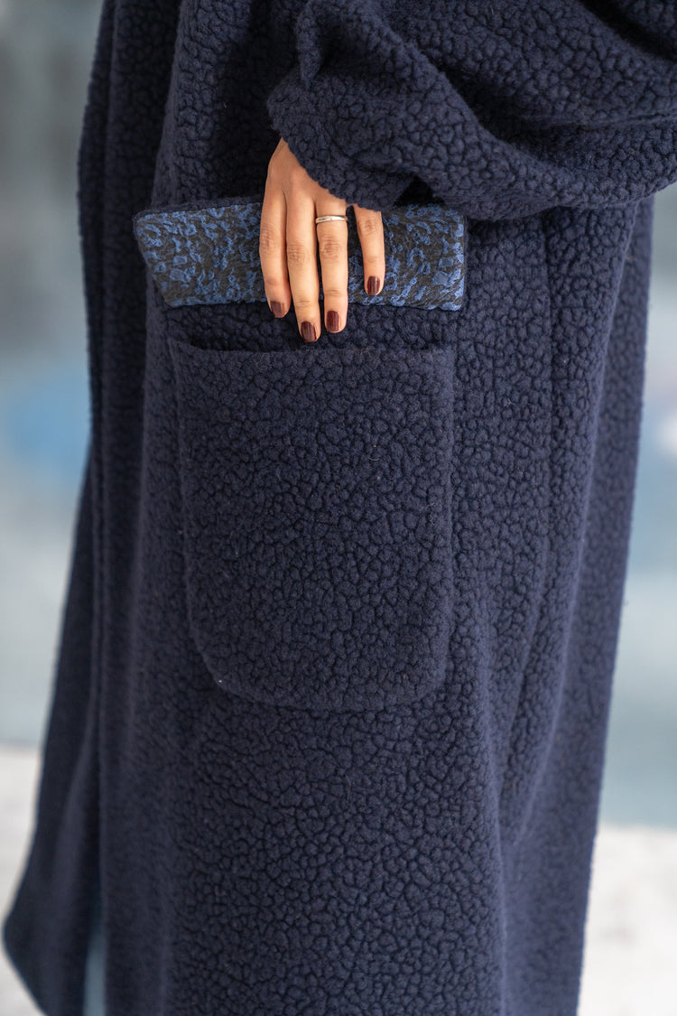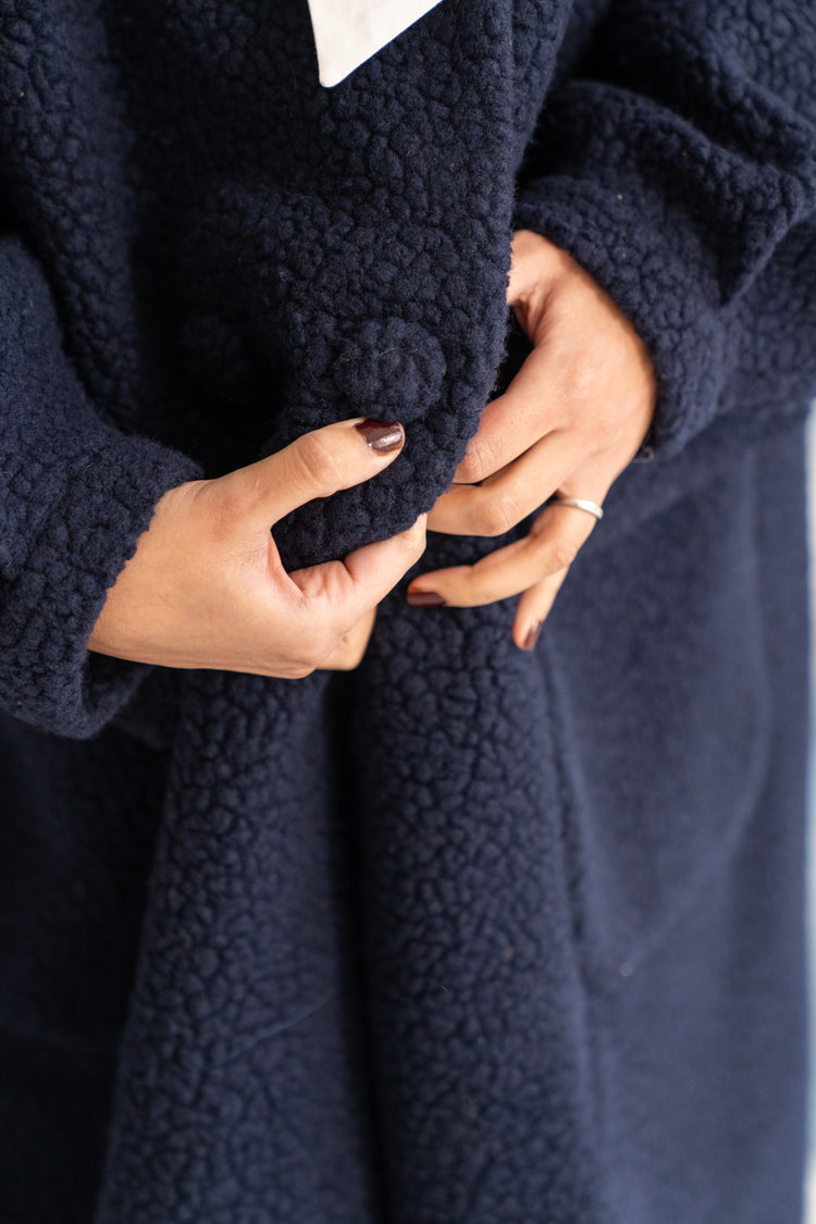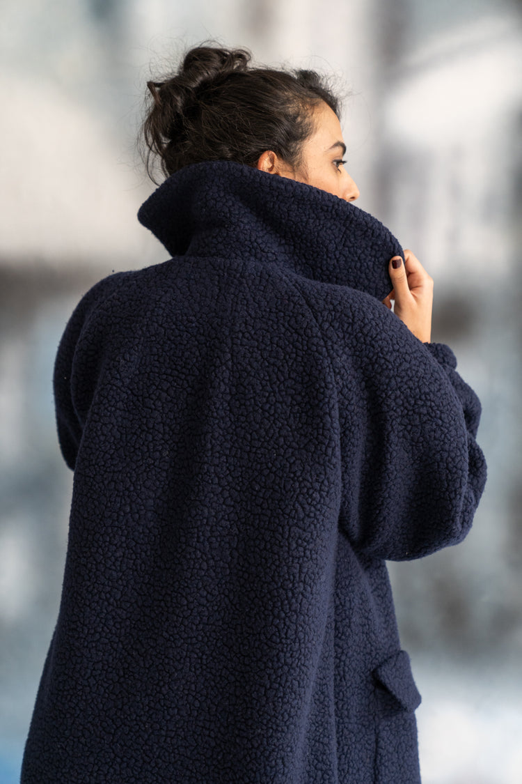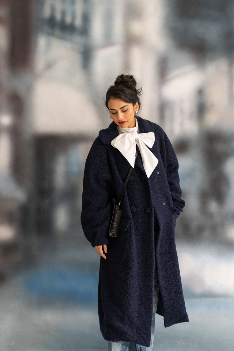 • Round Collar: A rounded collar adds a soft, feminine touch to the coat’s structure.