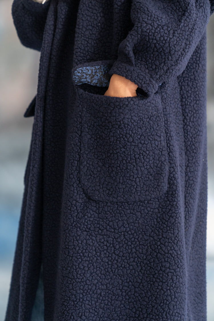 • Covered Buttons: Adds a sleek, refined finish to the coat's front.