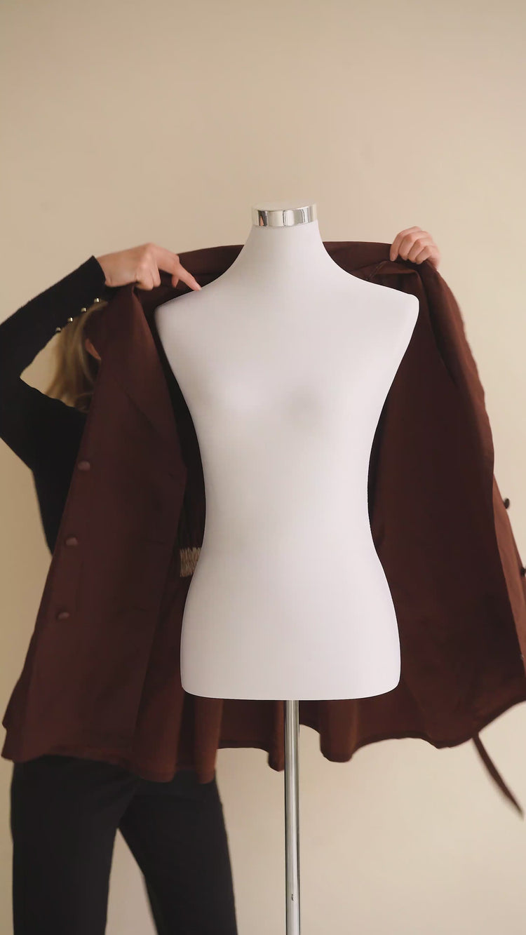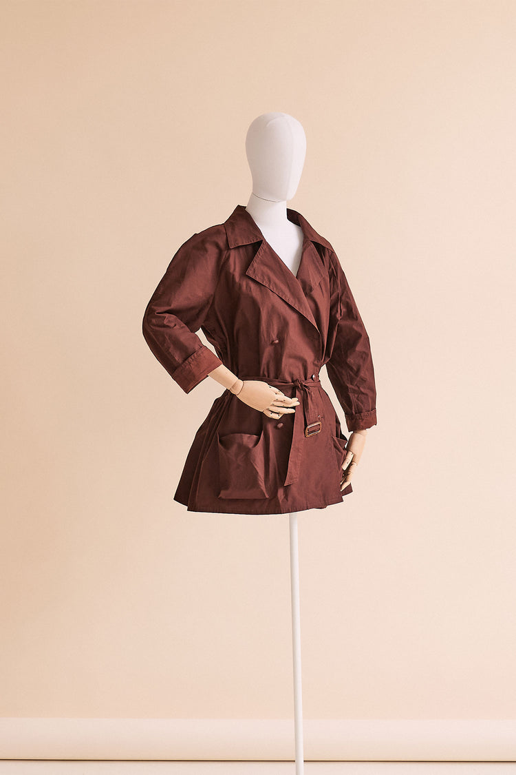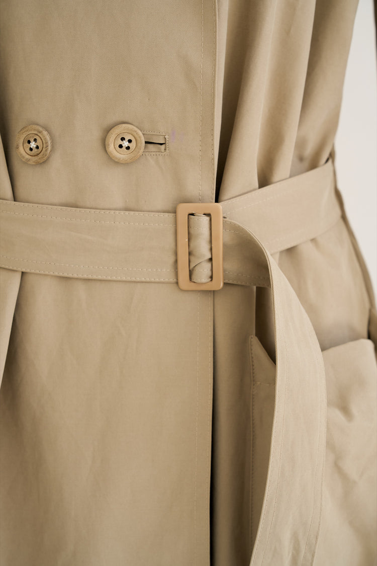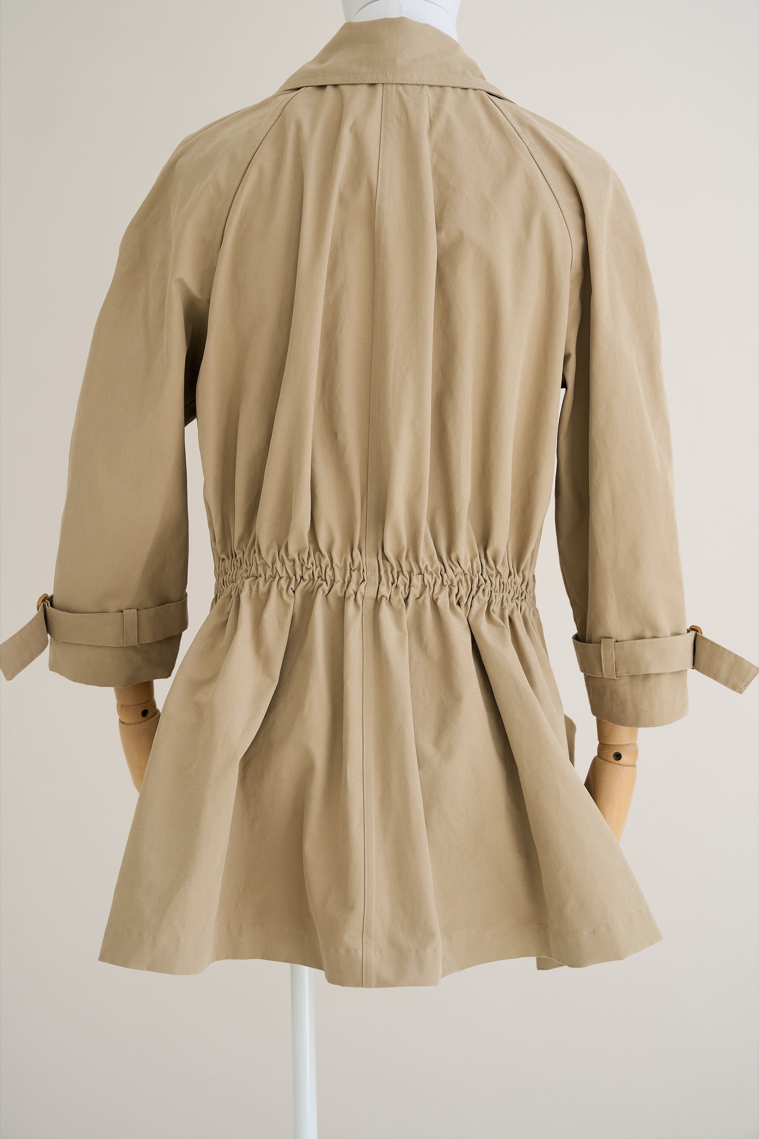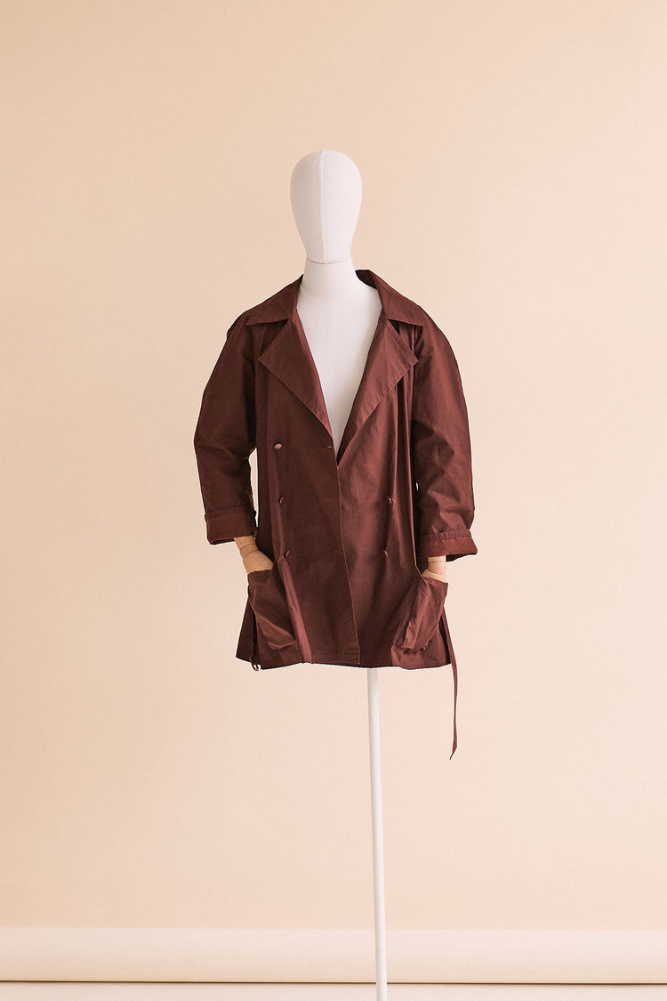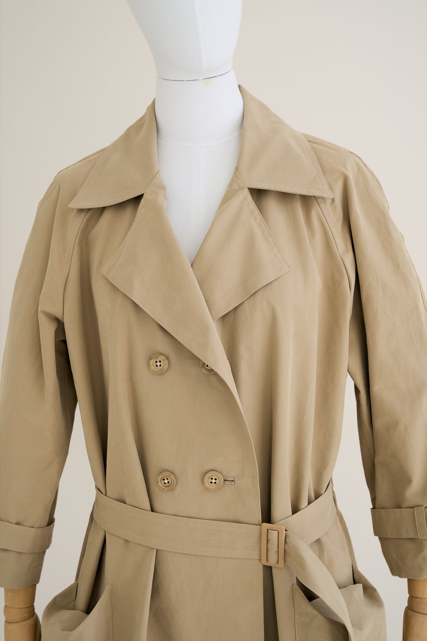 Our 57-2 MARLOW sewing pattern features a short and wide trench-style coat that blends utility with refined design. Whether sewn from a coated cotton or other jacket-weight fabric, this unlined coat is ideal for layering during transitional seasons. The wide shape and adjustable elastic in the back ensure both comfort and contemporary flair. The standout detail: oversized bellows pockets and a striking belt with buckle.