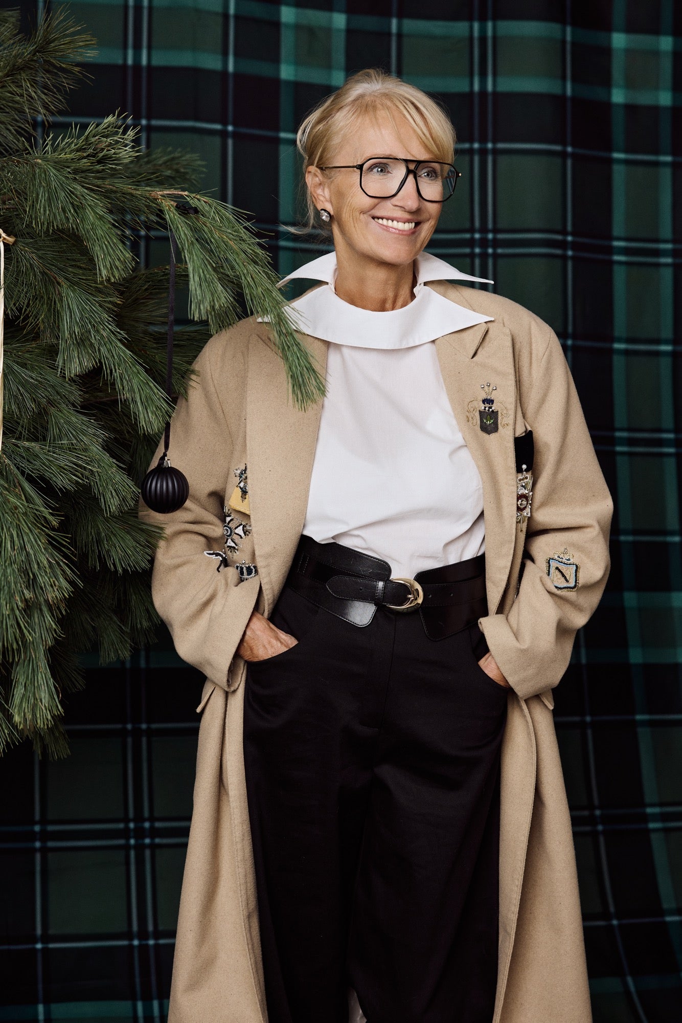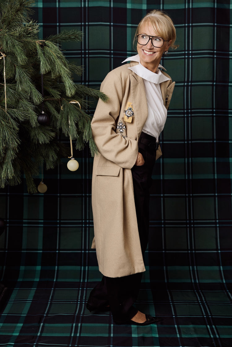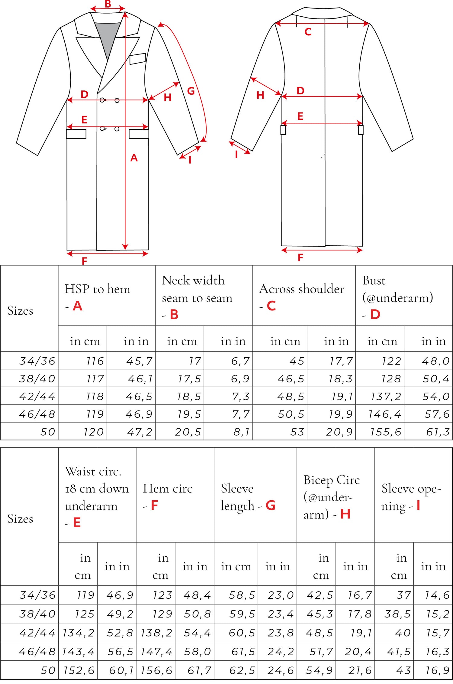 REGALIA is a timeless oversized coat designed for crisp winter days, combining structure, comfort, and classic tailoring. With its relaxed silhouette, the coat layers beautifully over chunky sweaters and winter knits. It features a double-breasted front, two flap pockets, and a slanted welt breast pocket for a refined, military-inspired look. Crafted ideally from heavier coat or wool fabrics, REGALIA offers warmth, elegance, and the opportunity to personalise your coat with bead or ribbon embroidery inspired by traditional insignias.