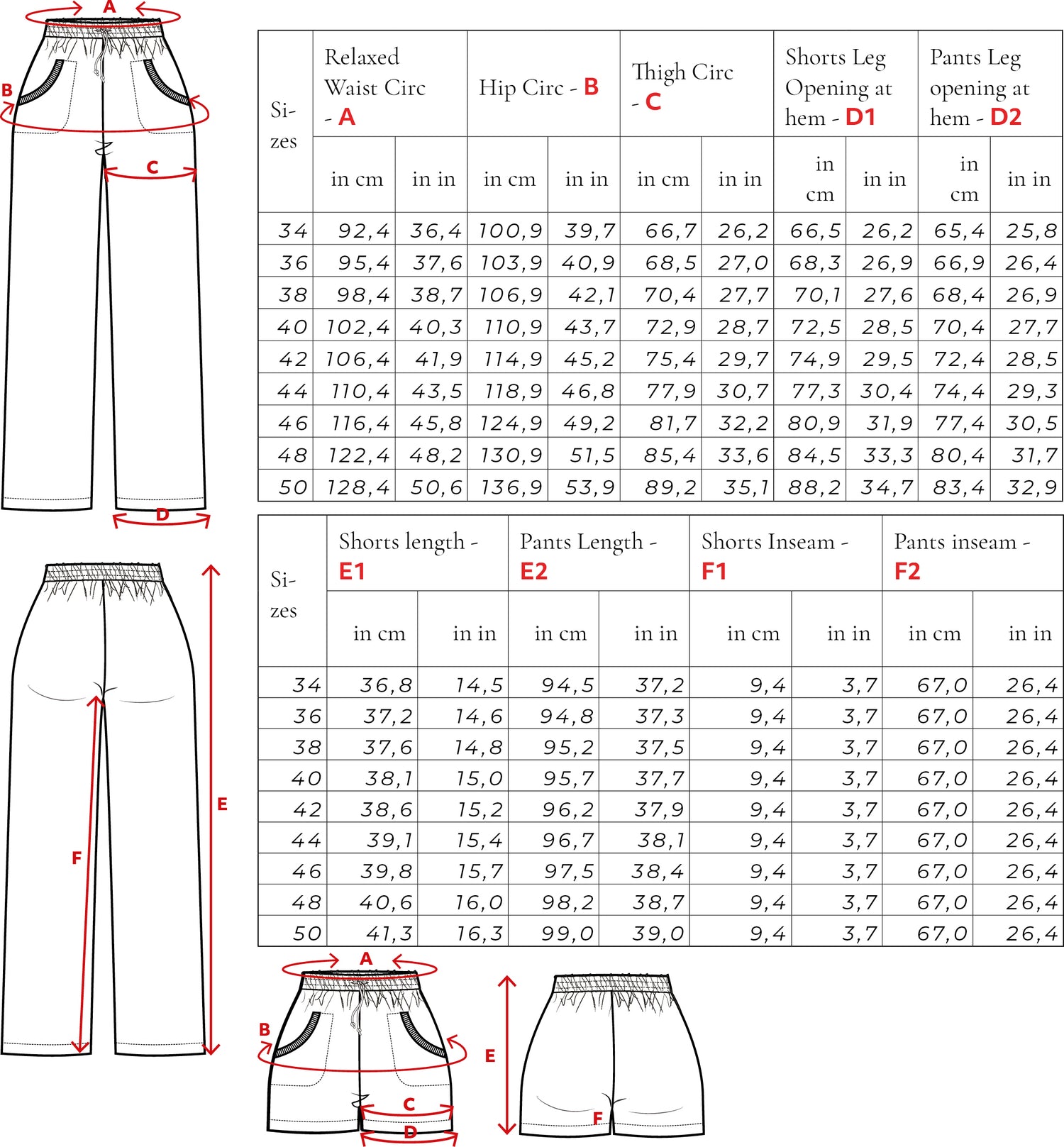 Size Chart for women clothing Size Chart Sizes 34-50 for sisterMAG Patterns
