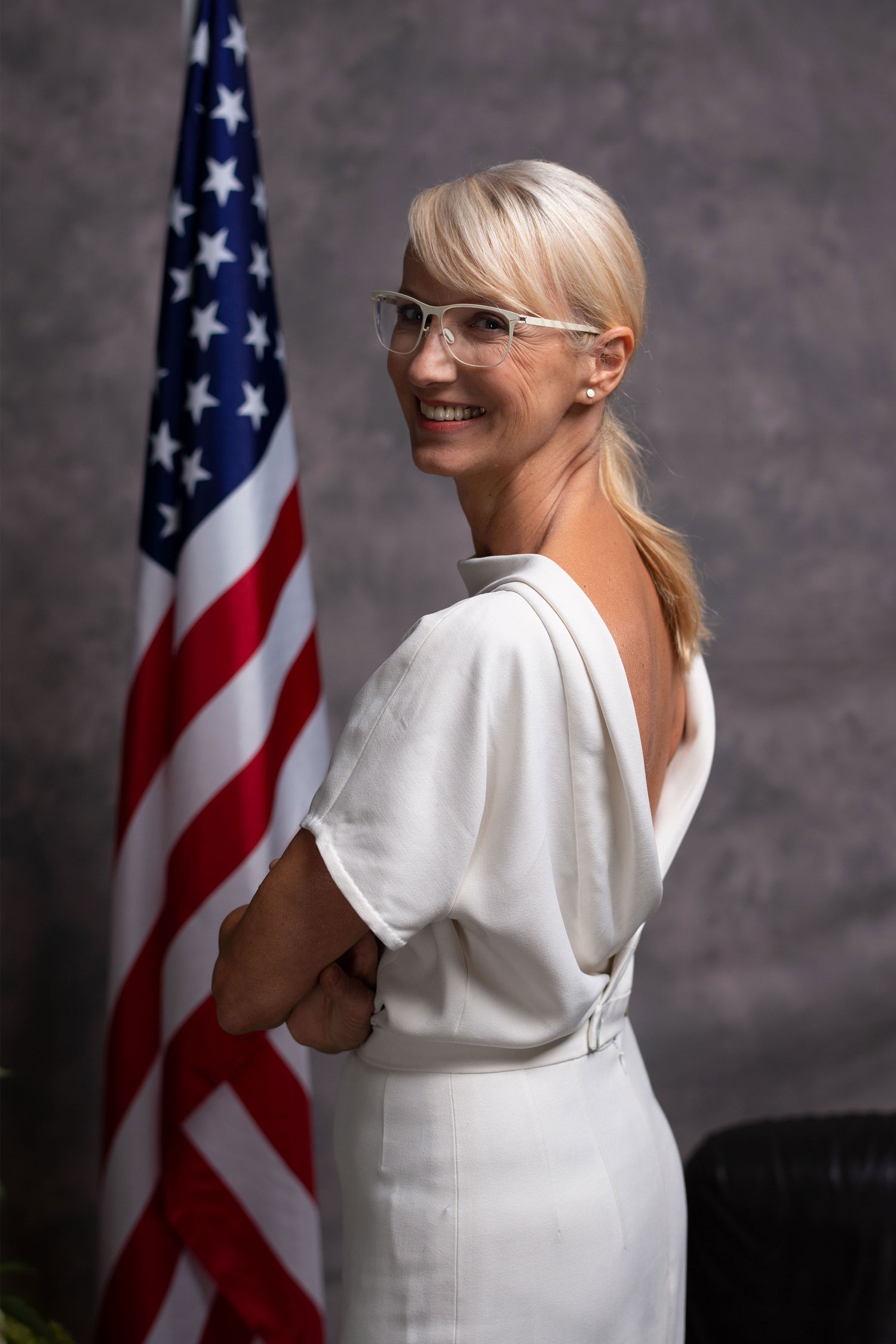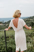 Breathtaking dress from the fashion shoot „Dress for Success" of sisterMAG issue 21. The crowning glory of our 21 collection is this artful dress with its v neck back. It is sewn from a soft draping, slightly heavier fabric made of silk, viscose or wool.  The body hugging skirt ends below the knees, but can also be made shorter if desired. You can close it with a seam zipper and buttons.