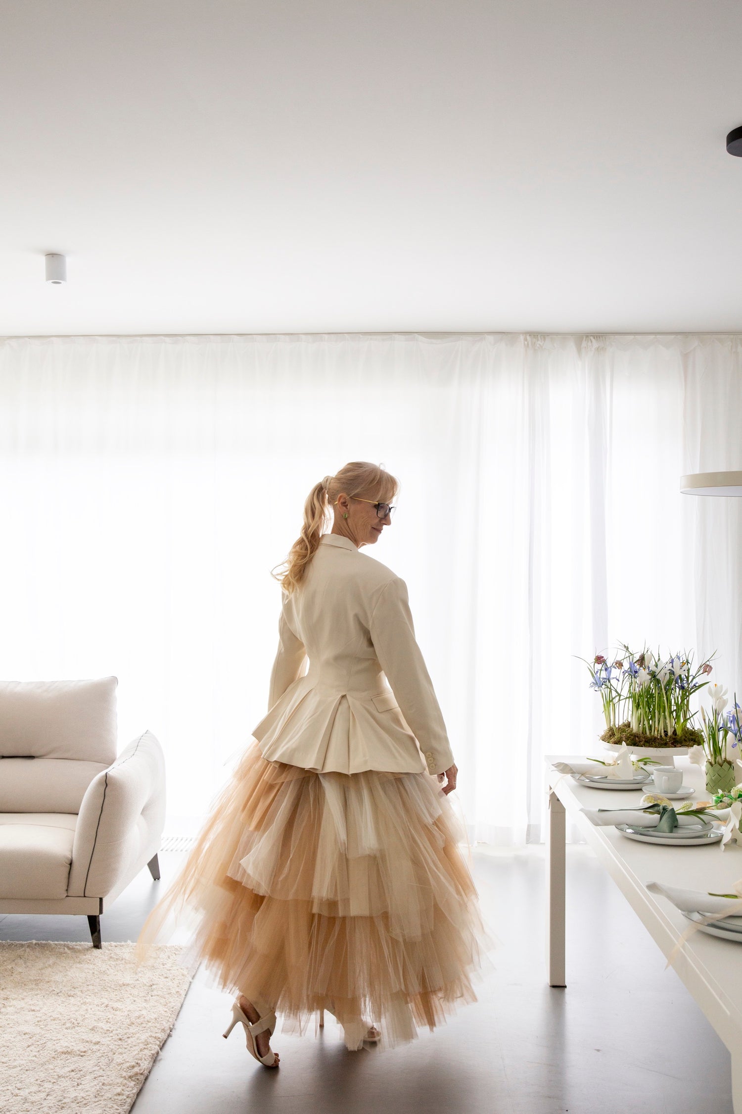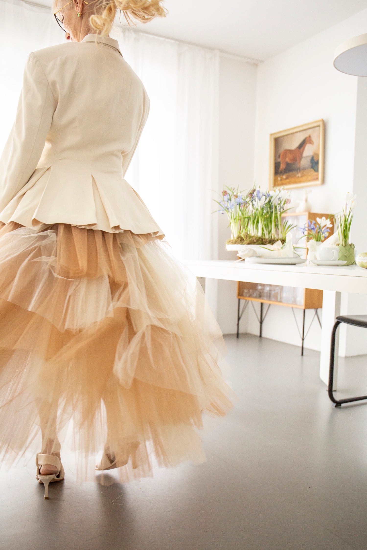 This Tailored Single Breasted Blazer from sisterMAG issue 56 is something for experienced seamstresses. The cut is reminiscent of a military jacket due to its waist and shoulder pads. The special folds are also known to many as 'dior folds'. This blazer can be worn in everyday life, in the office or chic in the evening.
