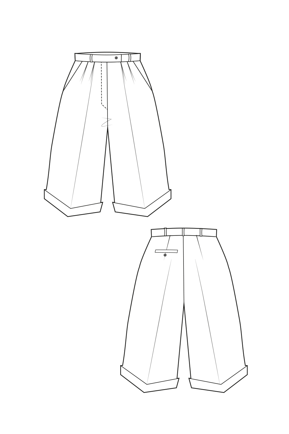 59-3 Comfy elegant pleated shorts (**) – print-at-home sewing pattern