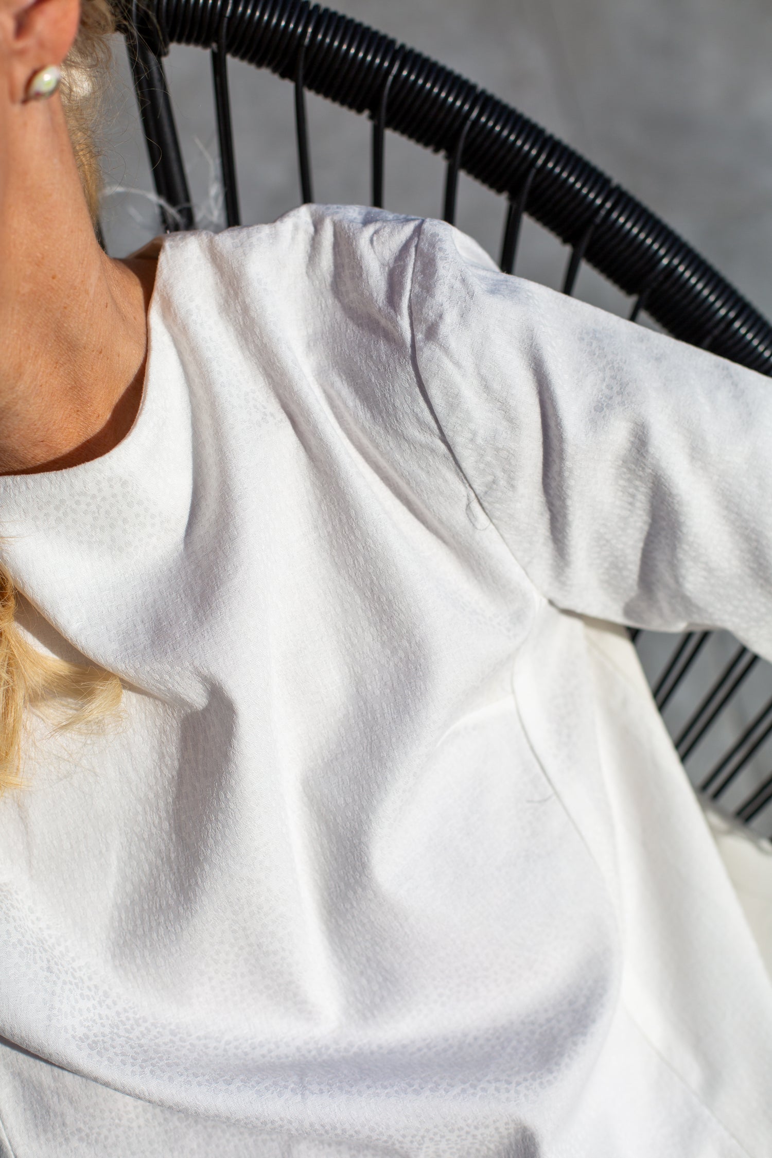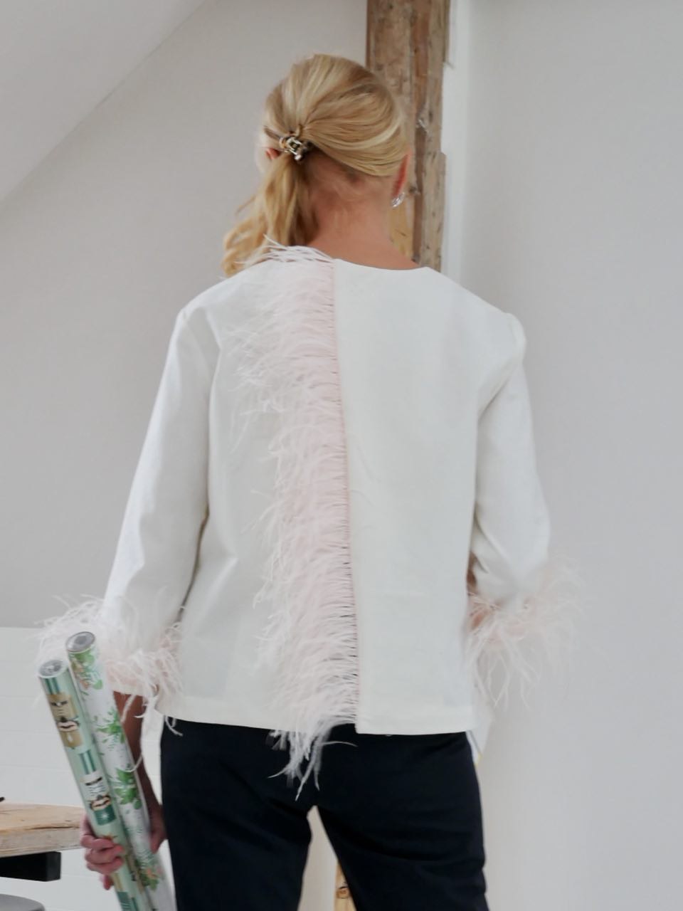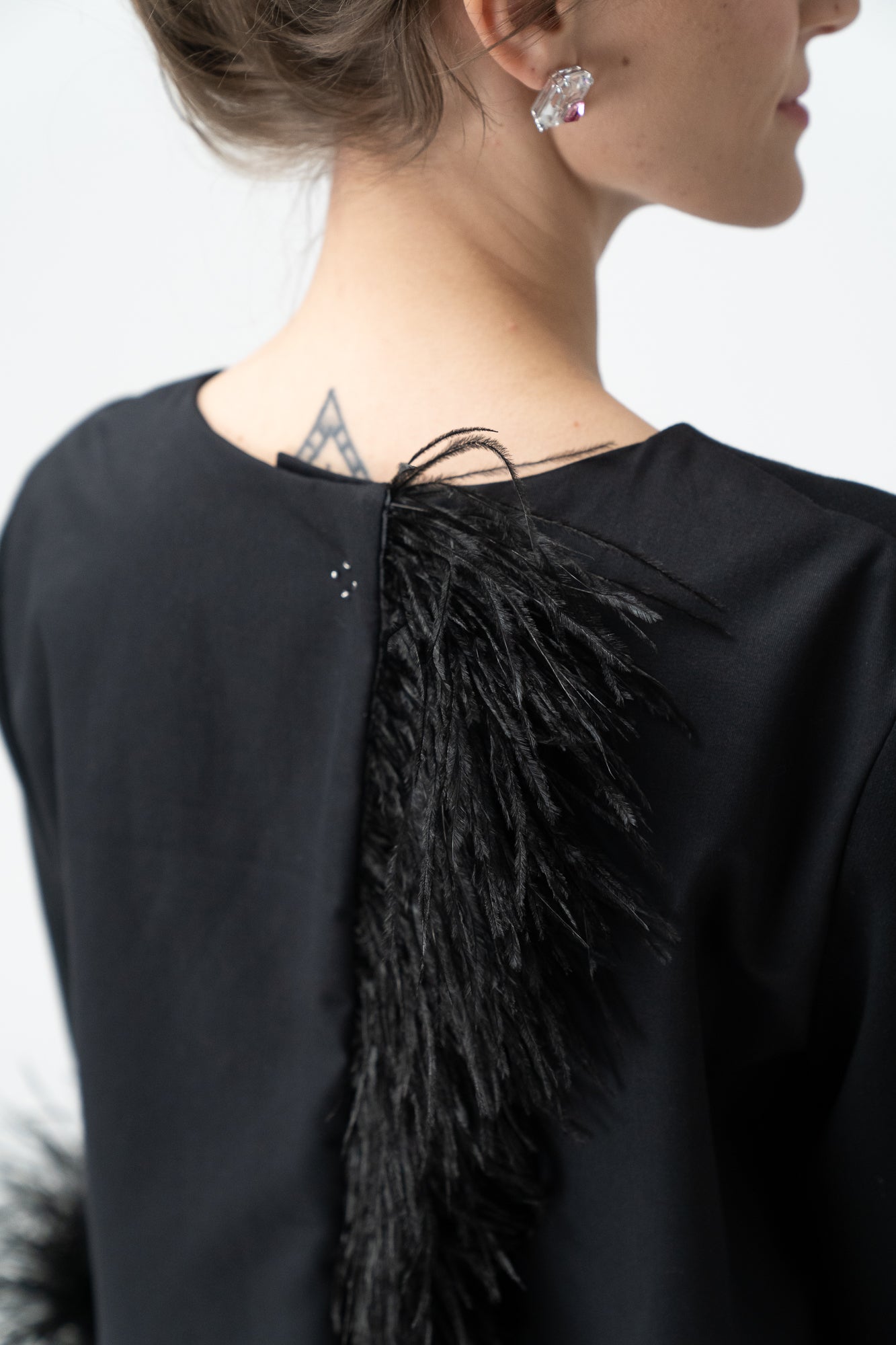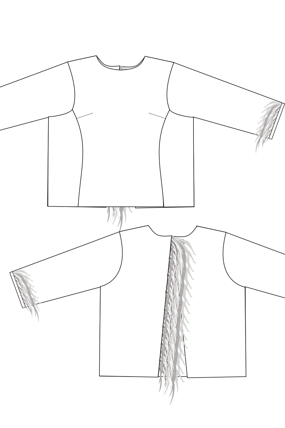 This short smock with back closure and feathers is easy to make and therefore also well suited for sewing beginners. It's ideally made from a thicker fabric. The feathers in the back are a playful add-on for a unique look.