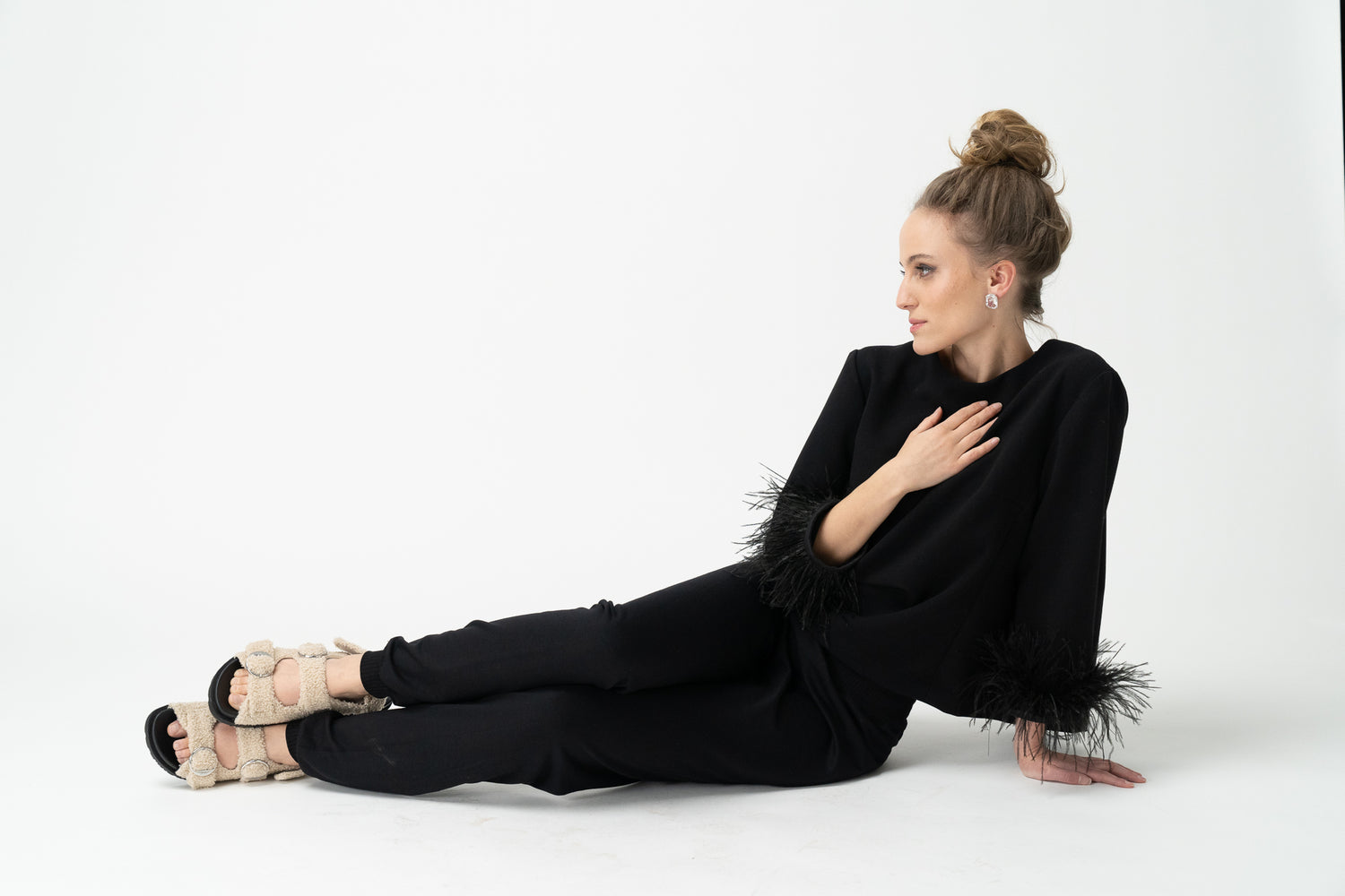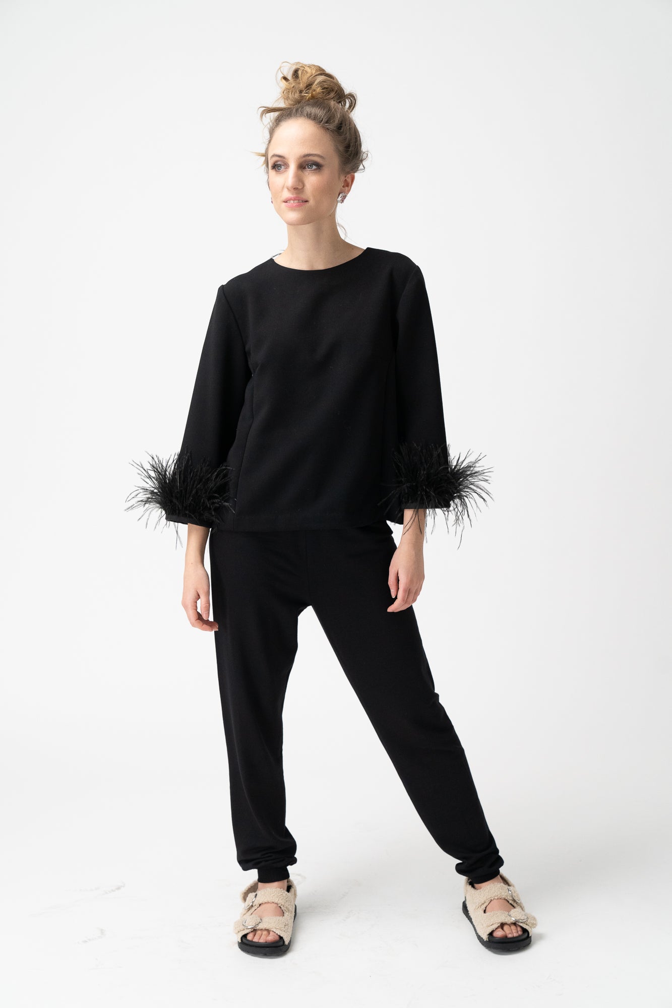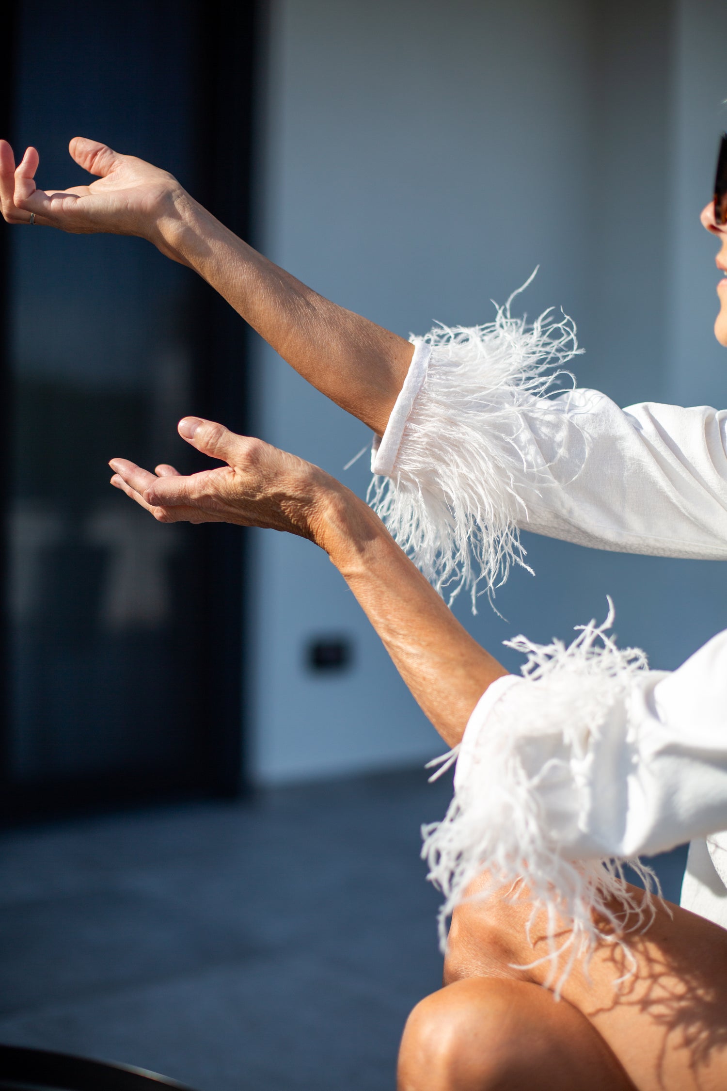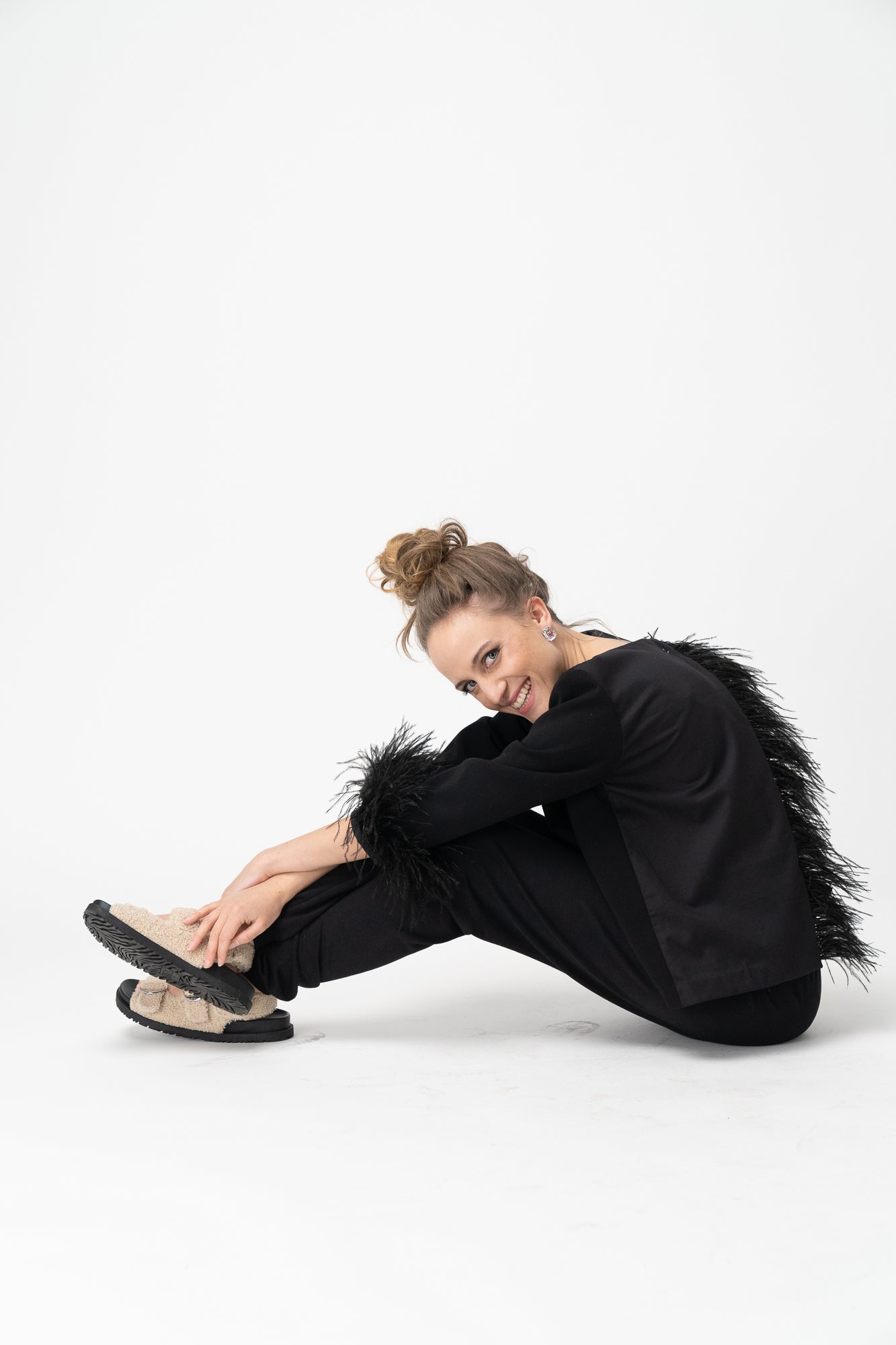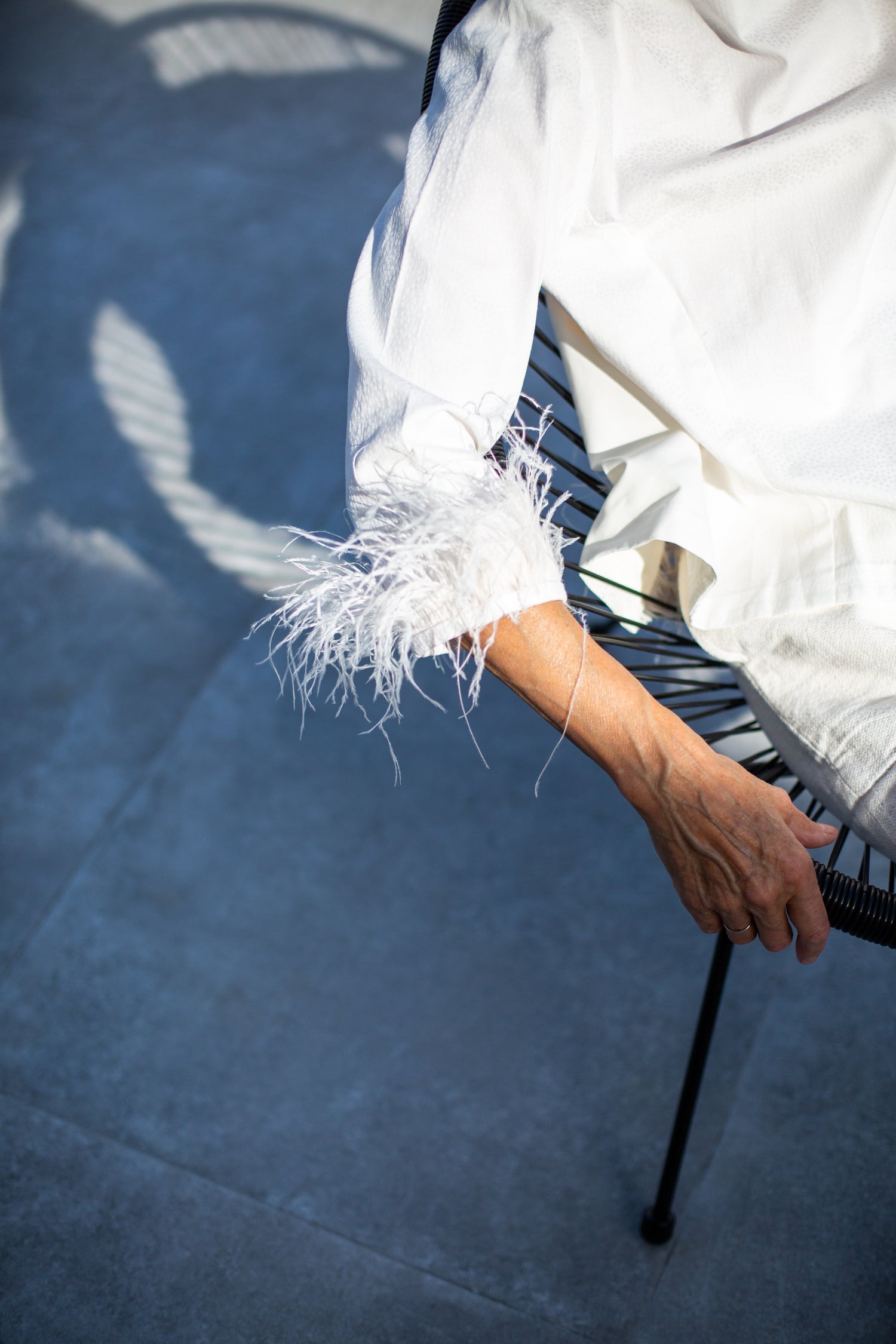 This short smock with back closure and feathers is easy to make and therefore also well suited for sewing beginners. It's ideally made from a thicker fabric. The feathers in the back are a playful add-on for a unique look.