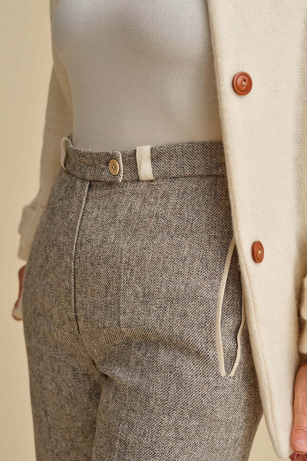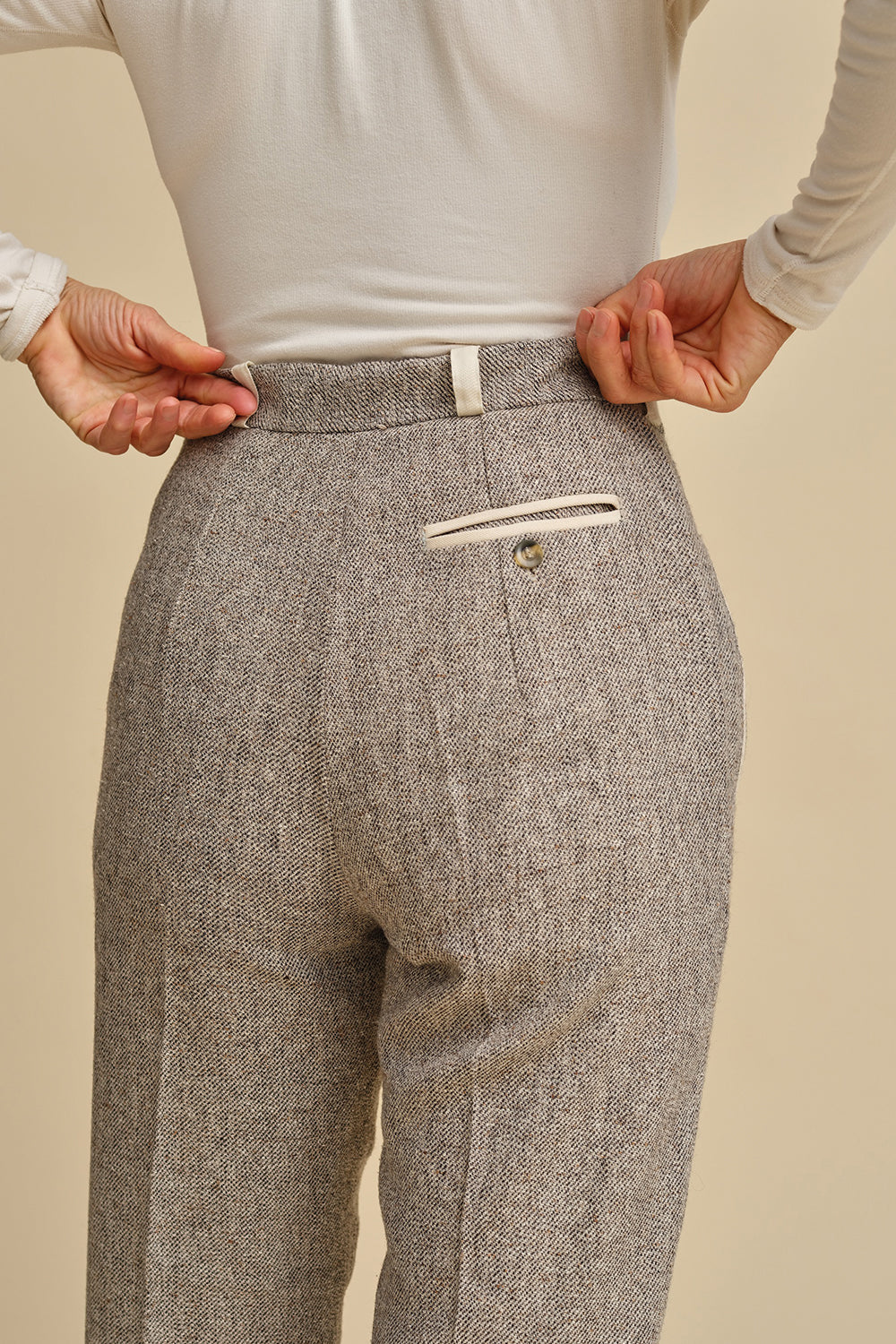 The sewing pattern also features a double welt pocket at the back and two welt pockets on the front that are attached to the zipper to lay flat. A classic trouser's zipper front makes the pant look super classic.