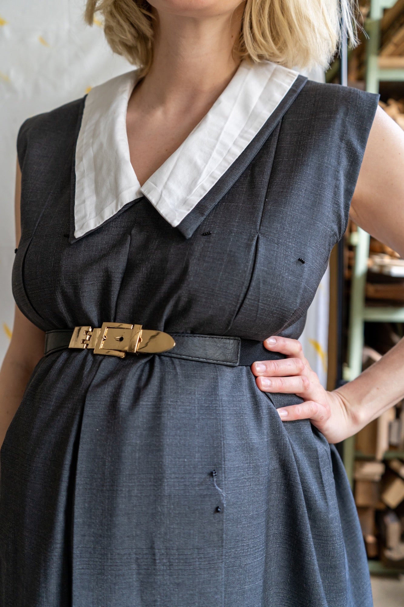 Fabric offcuts for buttoned collar