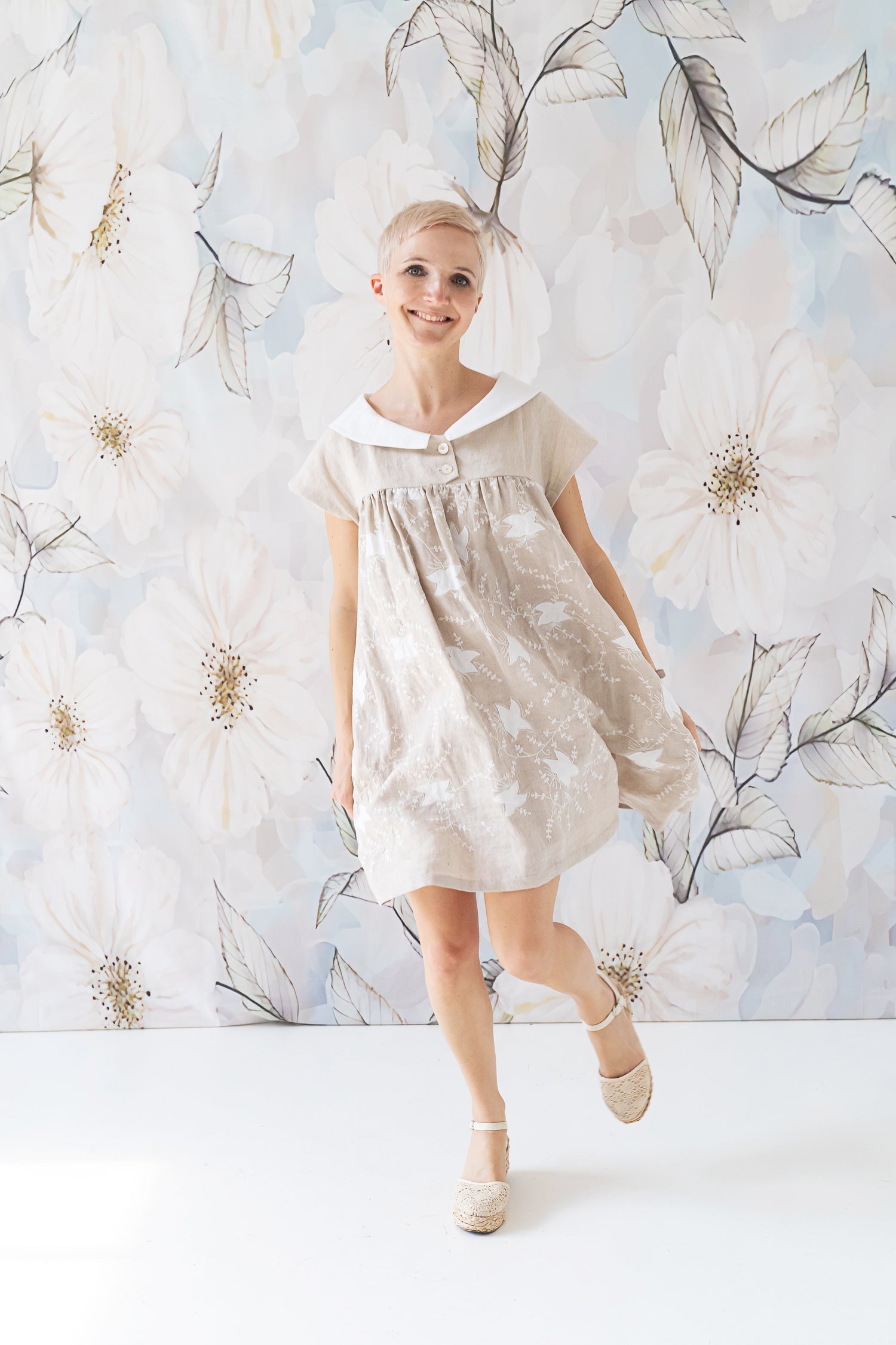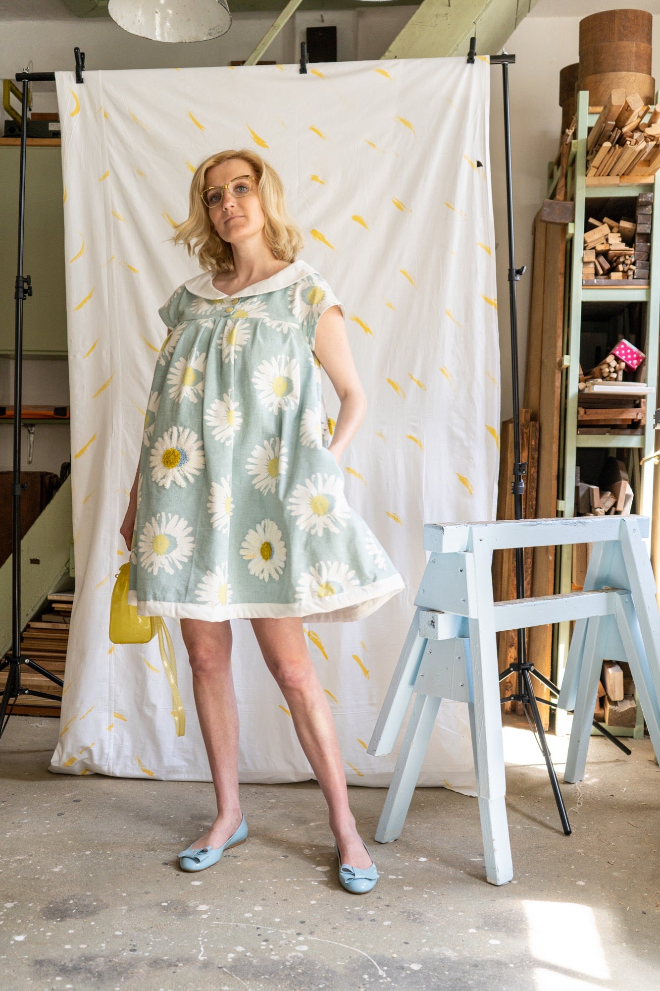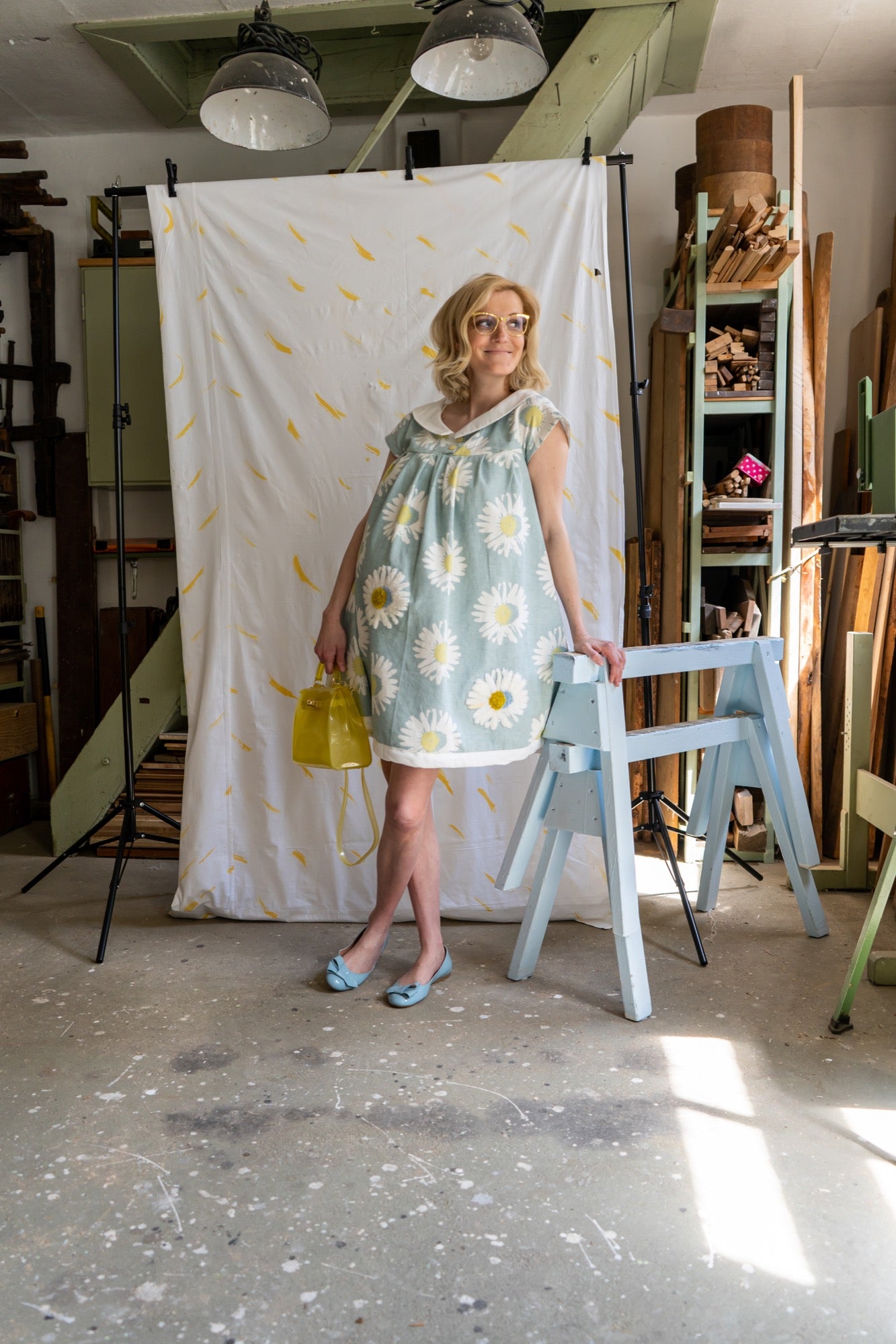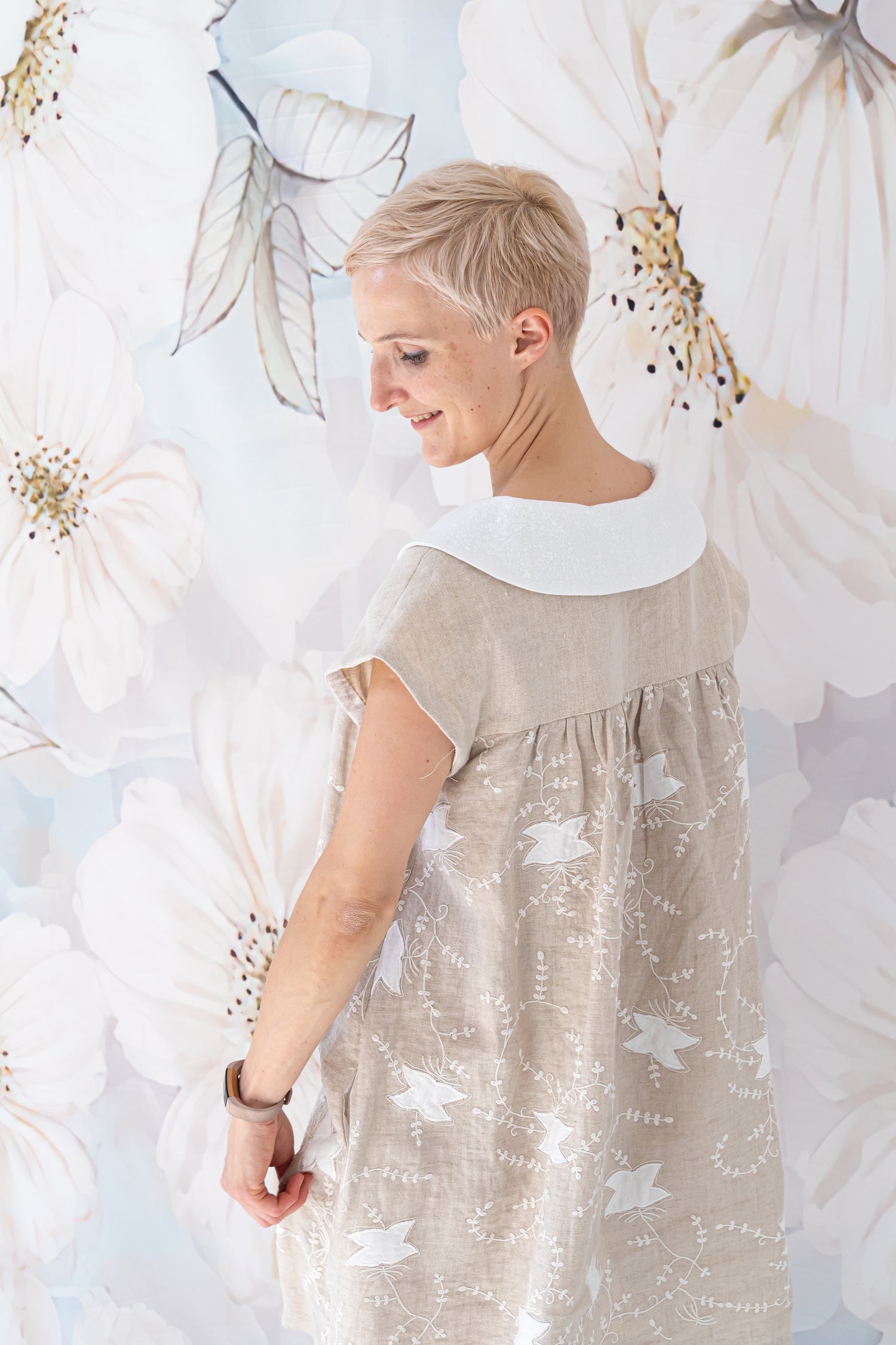 This loose short dress with punch needle flowers is part of our maternity fashion collection in sisterMAG No. 62. This dress is a sure bet for your wardrobe. As a maternity style it is super cute and an everyday pick-me-up for your mood. And beyond that you can still wear it as a summer favourite. The most special feature are the punch needle flowers.