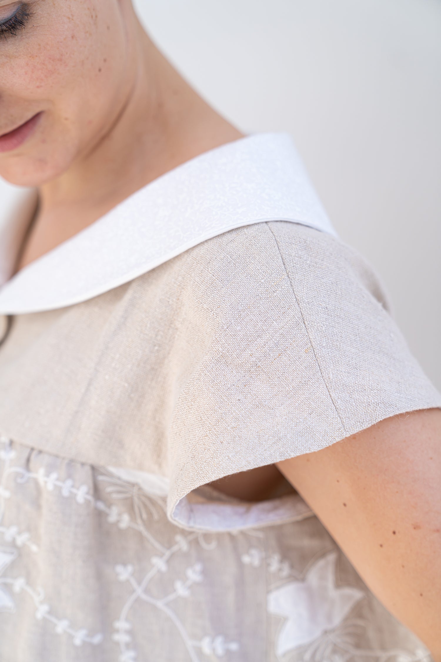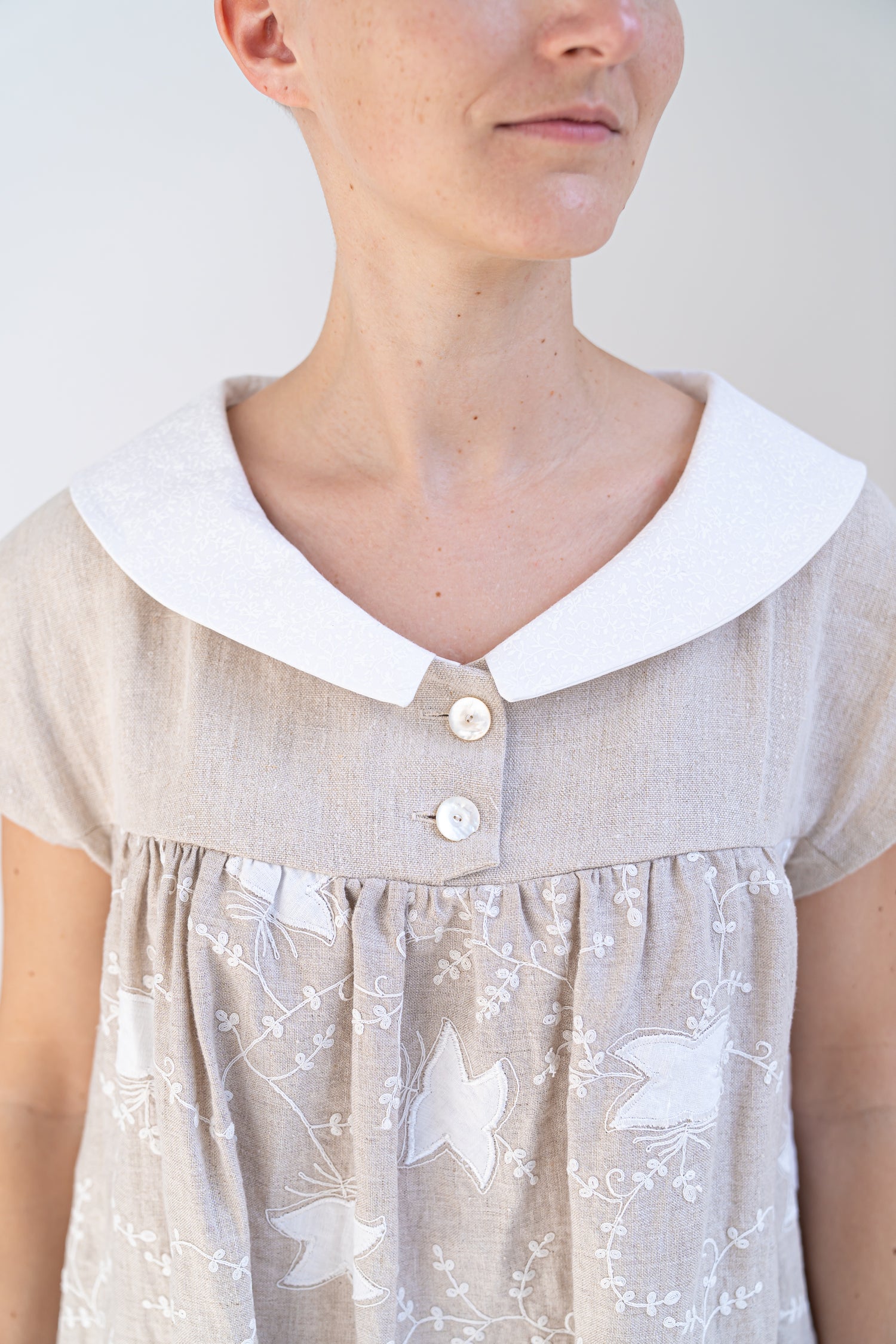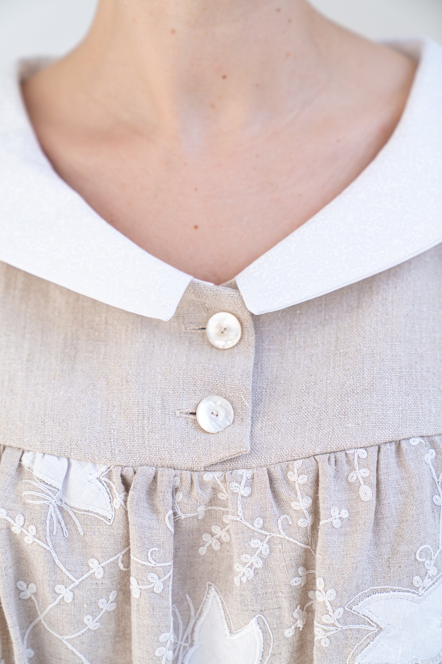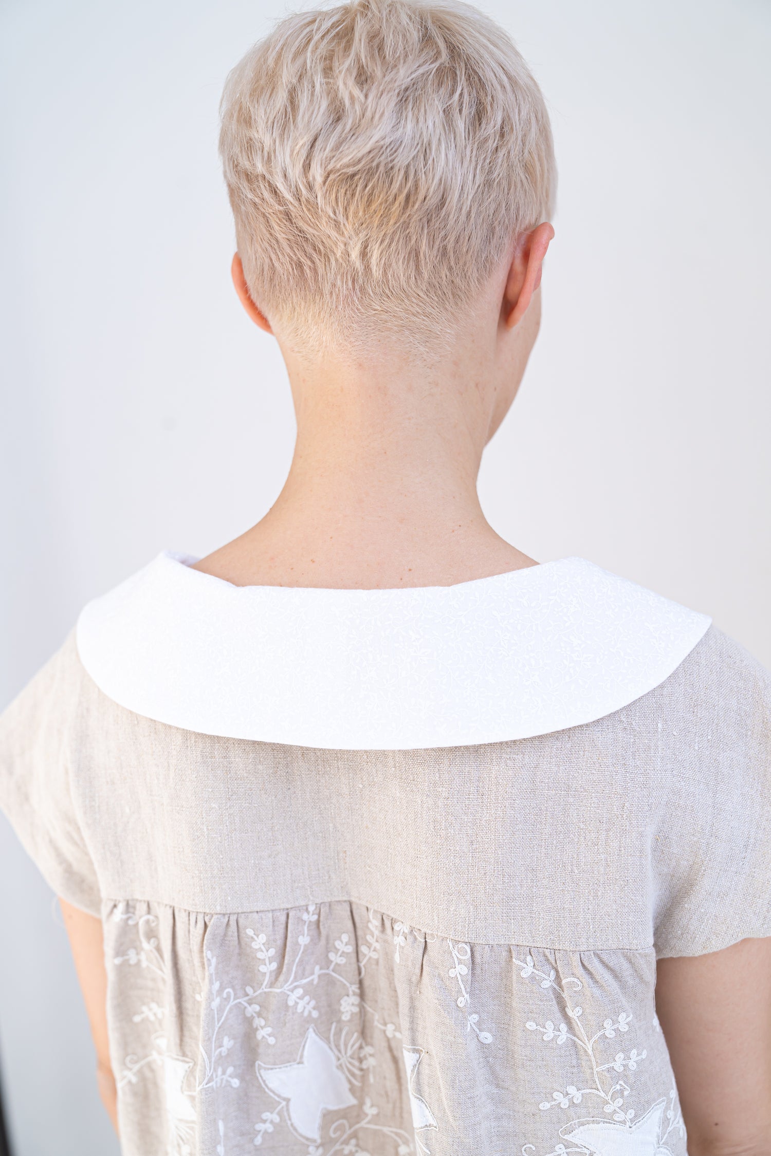 You need a fine, not too thin white cotton fabric for the collar and the hem.