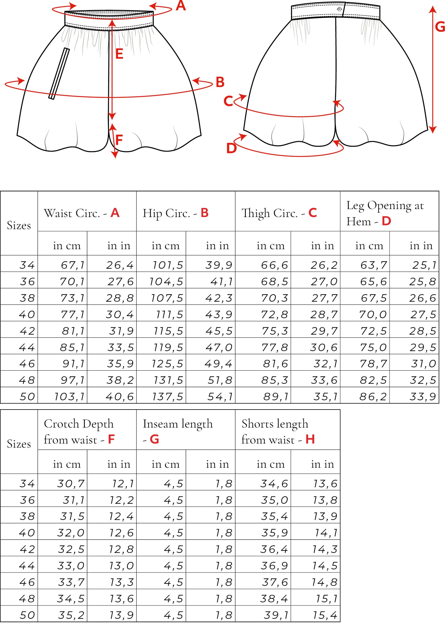 Size chartAs important as the right fabric: the fitting and finding the right size for your body shape. Check out our Size Chart to see which of the included sizes will fit you best.