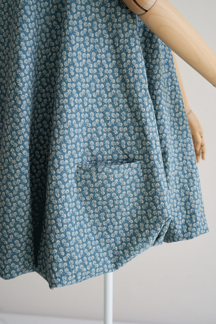 • Construction: A full inner dress made of light cotton pulls up the outer dress, which is layered in gathered sections at the hem for the balloon effect