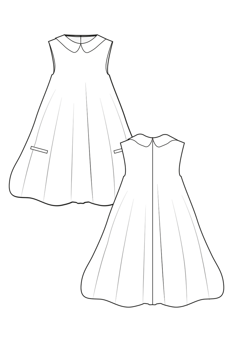 Bold shape meets playful charm: The CHAPINERO bubble dress brings a fresh and sculptural silhouette to your wardrobe. With its dramatic balloon shape and short hemline, this sleeveless piece makes a statement while staying light and wearable. The classic Peter Pan collar and delicate welt pockets add a hint of retro charm, while the invisible zipper and full lining ensure a clean and comfortable finish. Whether worn with heels for a special occasion or styled casually with sneakers, CHAPINERO is an eye-catching companion for warm days.