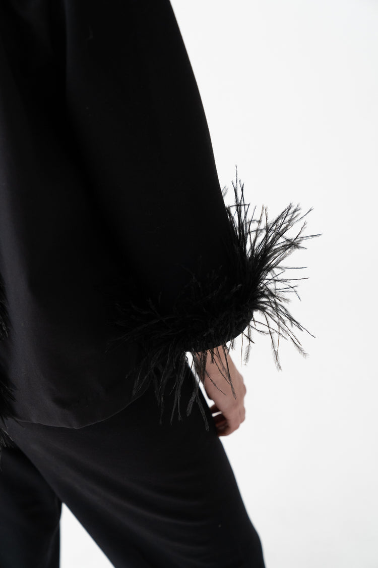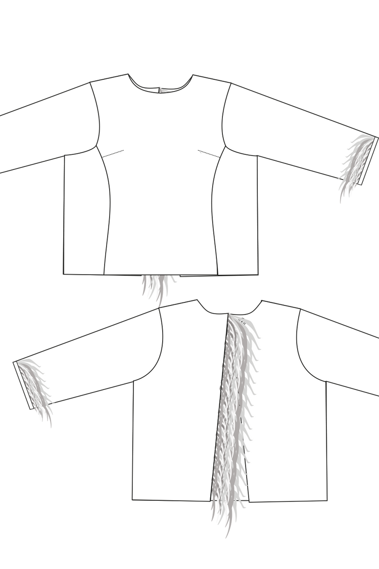 This short smock with back closure and feathers is easy to make and therefore also well suited for sewing beginners. It's ideally made from a thicker fabric. The feathers in the back are a playful add-on for a unique look.