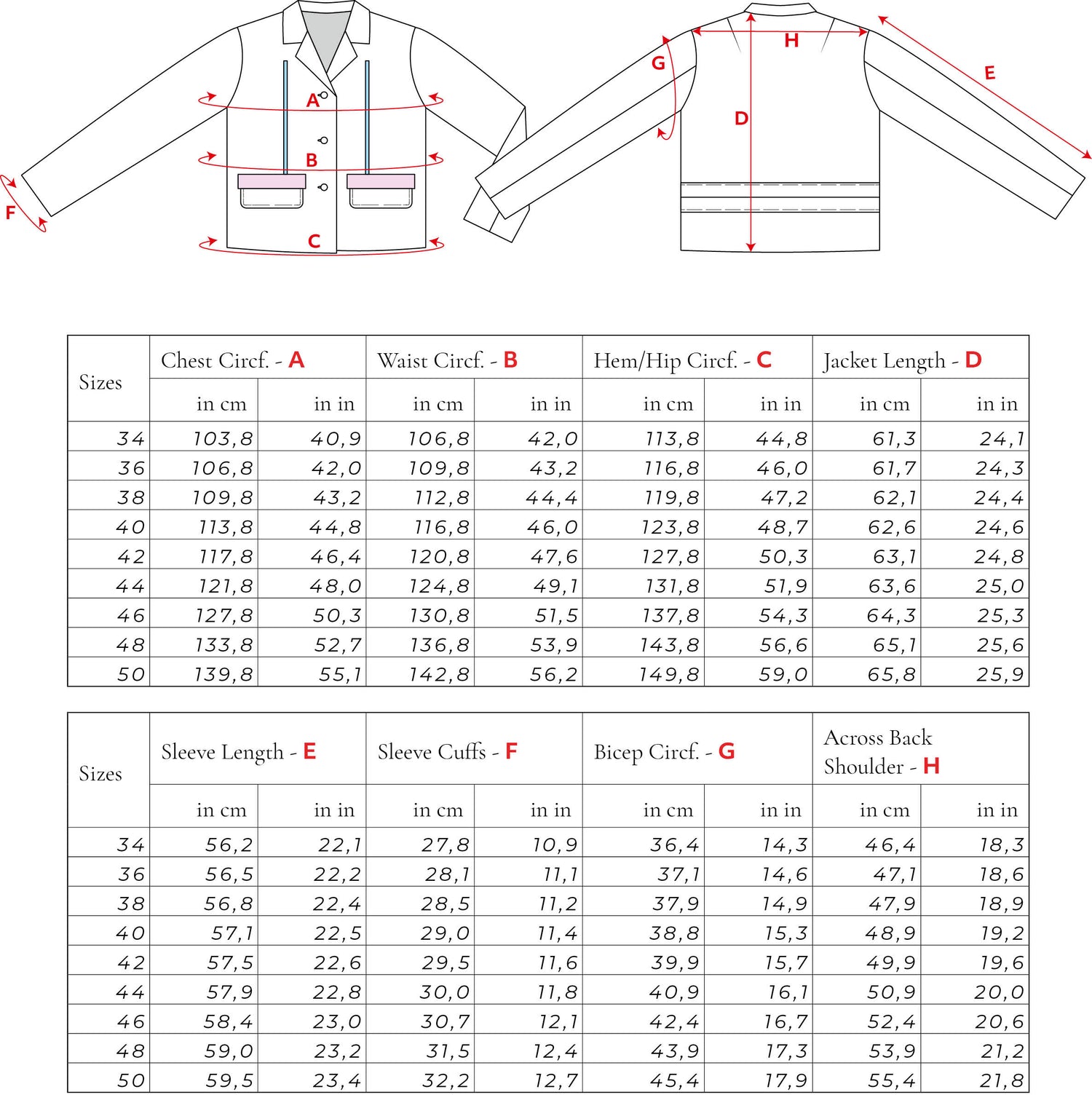 Size chartAs important as the right fabric: the fitting and finding the right size for your body shape. Check out our Size Chart to see which of the included sizes will fit you best.