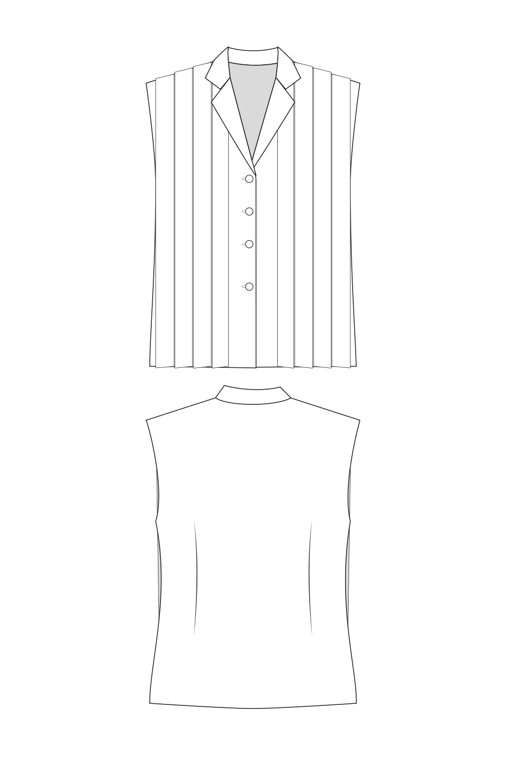 The Lapel Blouse 64-3 features a stylish lapel collar and a button panel on the front. The main design feature however are the pleats along the front, that let it stand out.