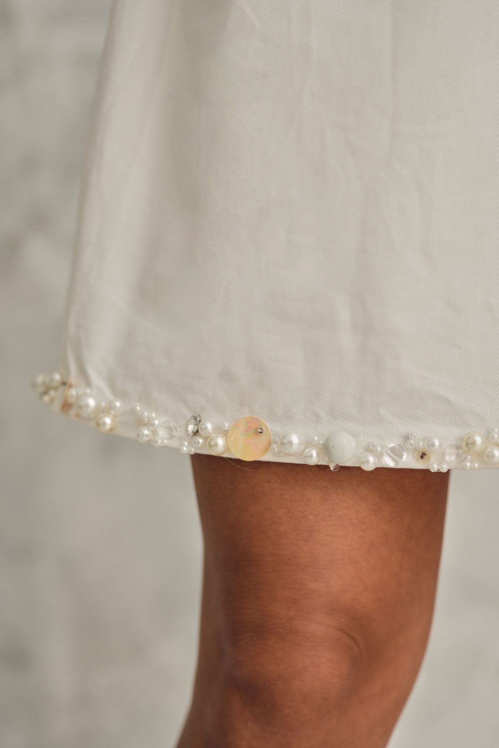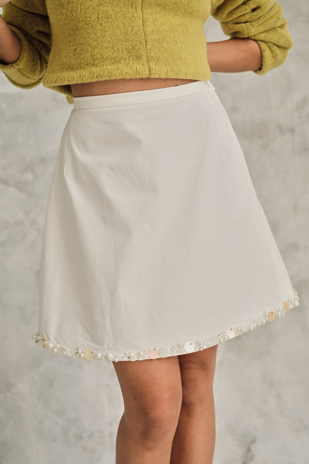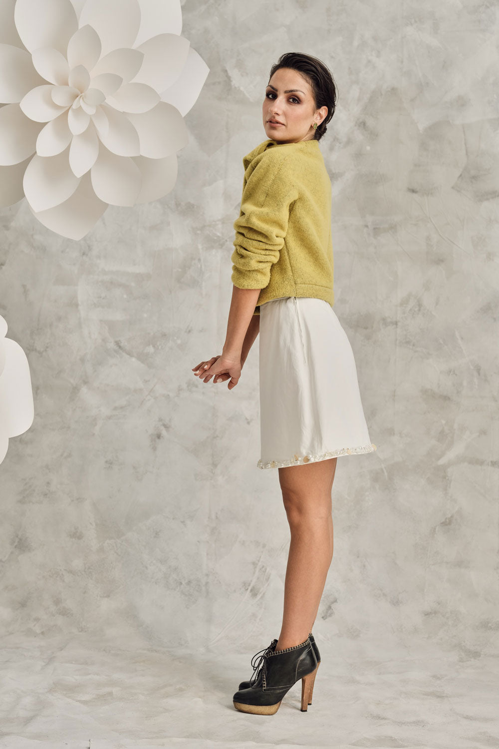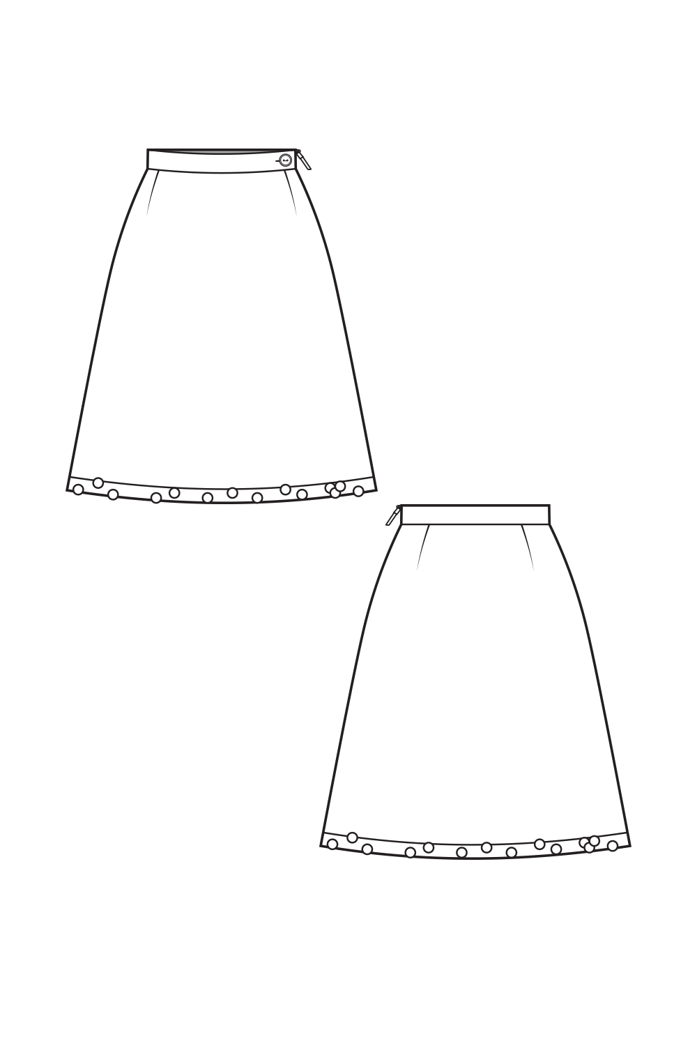 This flared A-line skirt from sisterMAG issue 14 is ideally made from a cotton fabric with stand. It has an embroidered hem and ends above the knees. It sits on the waist and can be perfectly combined with blouses and high shoes, for example. But the skirt is also well suited for everyday work in the office.
