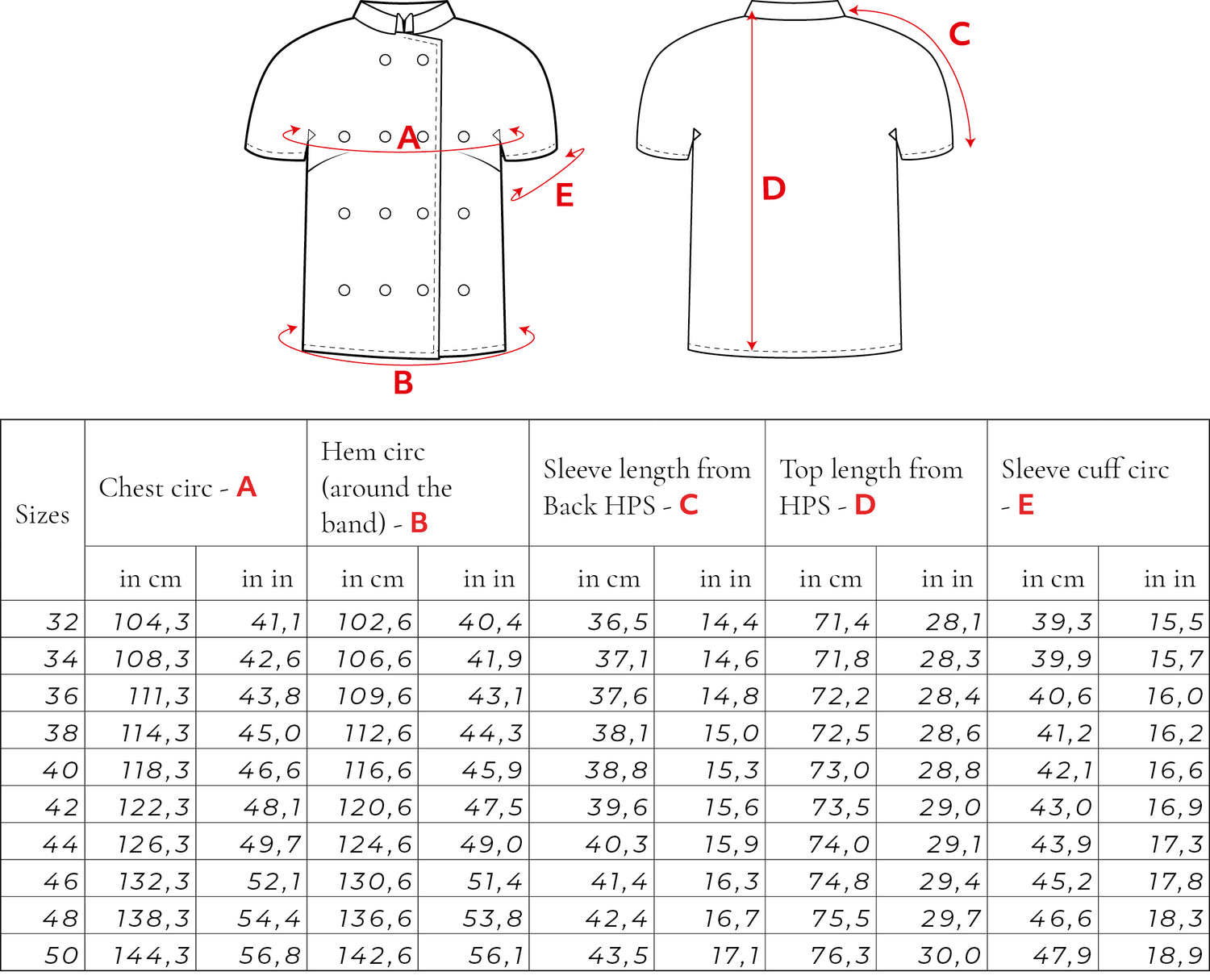 Size chartAs important as the right fabric: the fitting and finding the right size for your body shape. Check out our Size Chart to see which of the included sizes will fit you best.