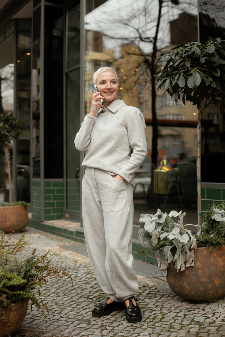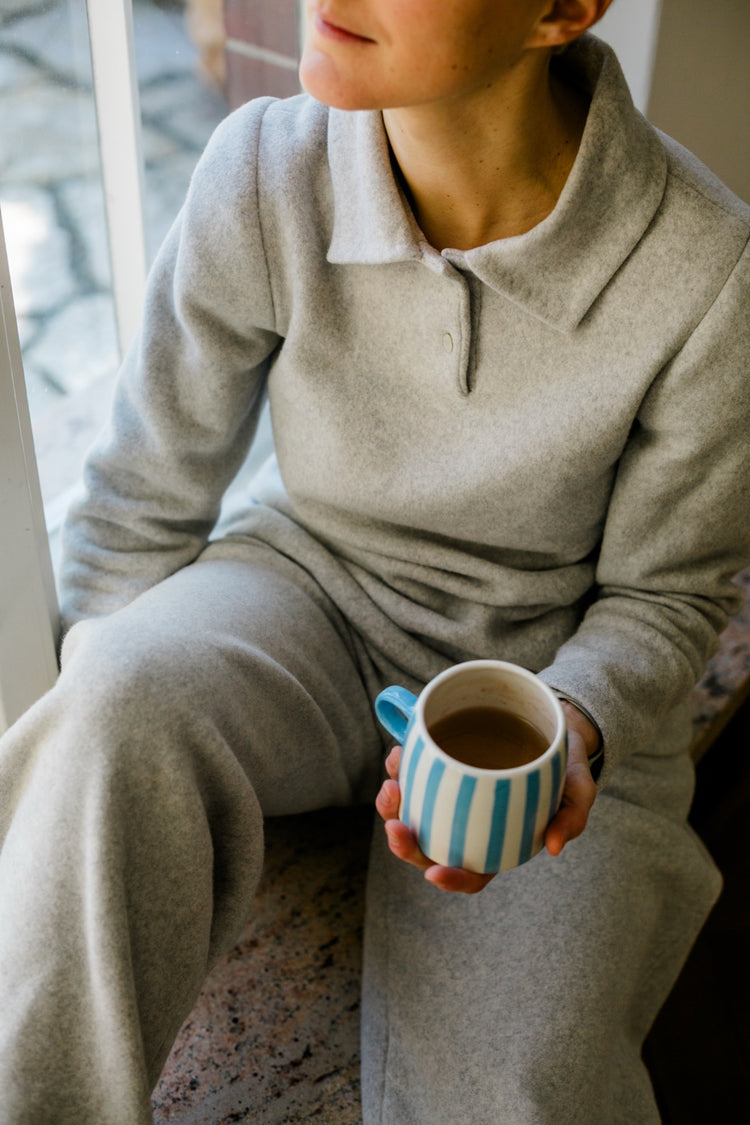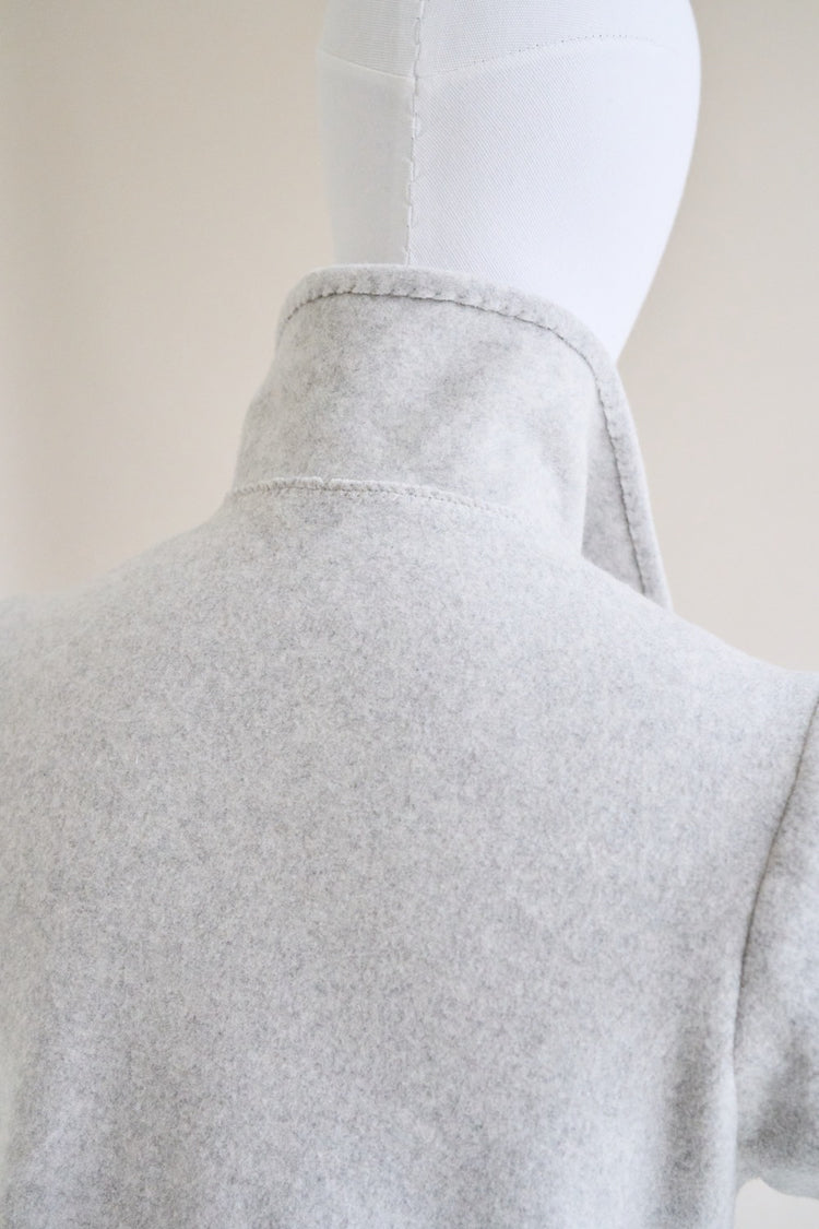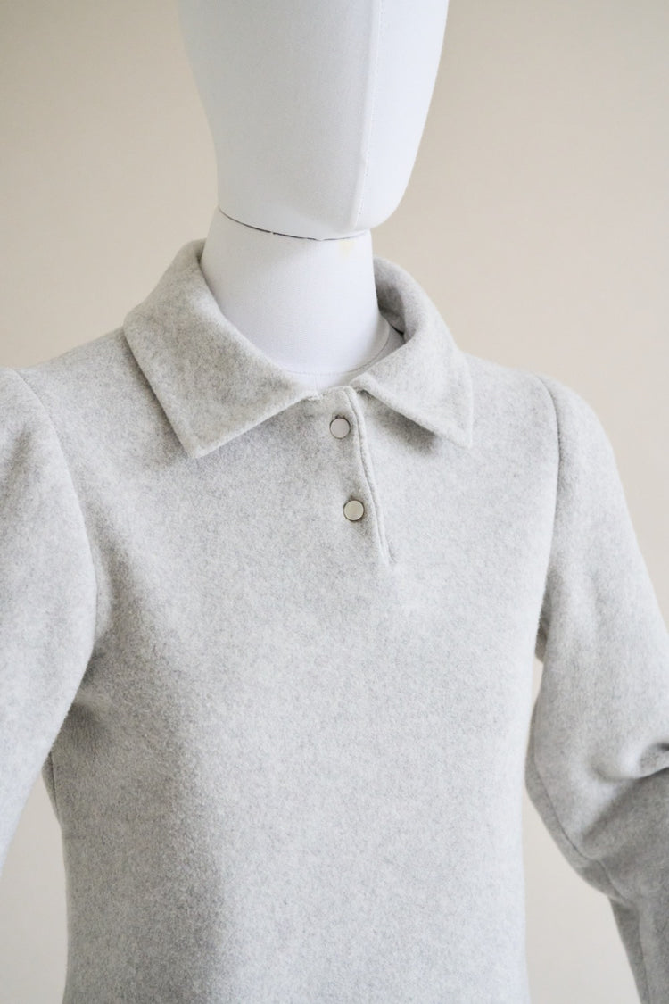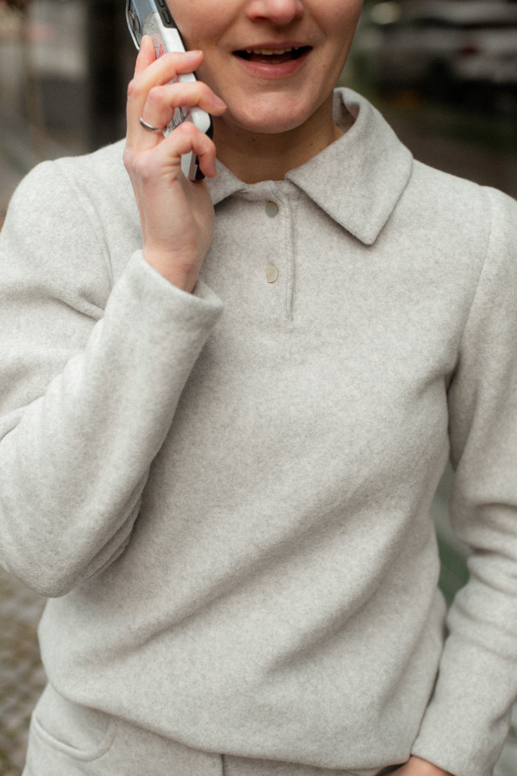 Stay cozy and chic with the 70-19 Polar Fleece Pullover with Gathered Puff Sleeves. This tailored pullover features a classic polo closure and collar, creating a sleek silhouette with a touch of elegance. The puff sleeves are gathered to add volume and a statement look, with a slight leg-of-mutton shape that adds subtle drama. Perfect for colder weather, this pullover is designed for maximum comfort, using fleece fabrics such as Mouflon, Merino fleece, or boiled wool.