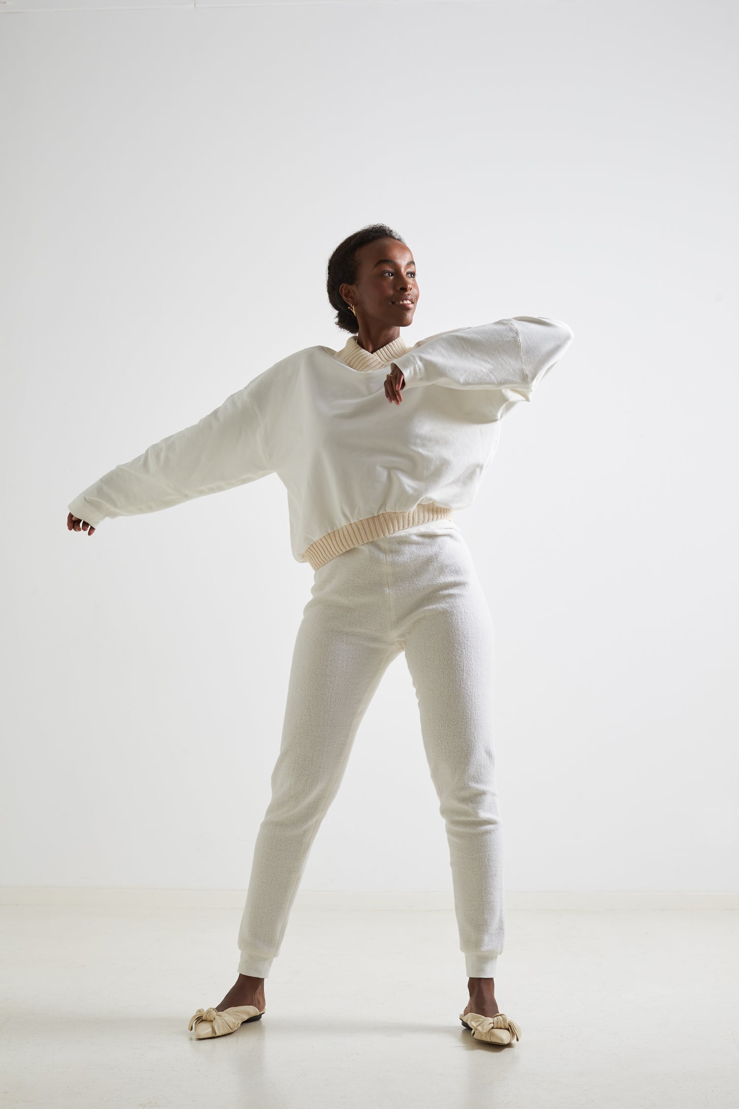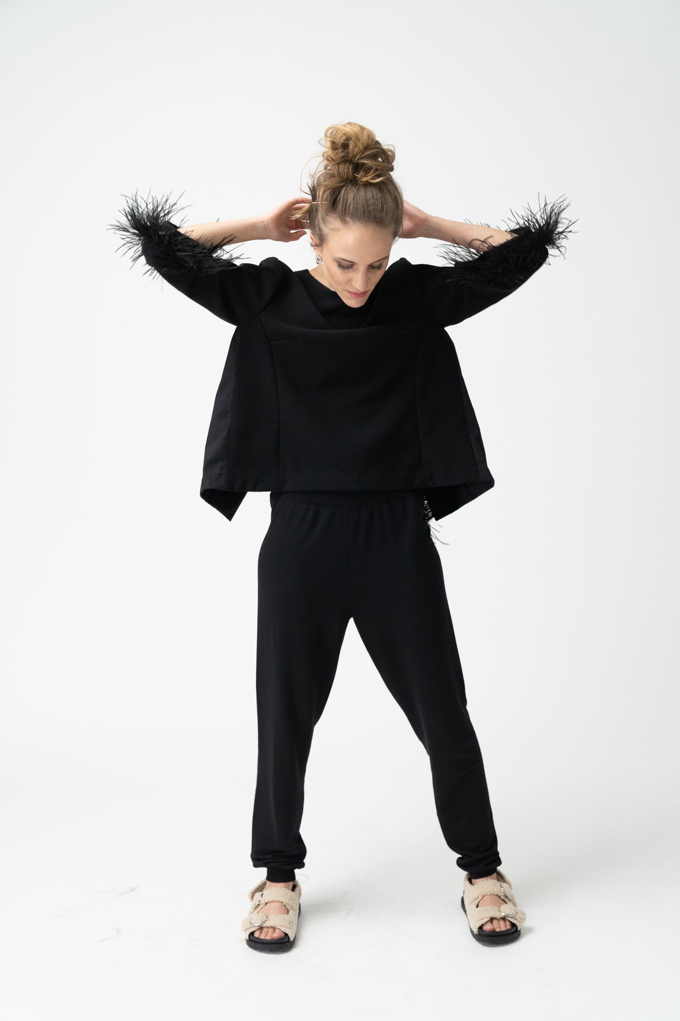 A creation from sisterMAG issue 57 - sewing pattern for comfortable jogging pants / lounge wear pants made of jersey. Perfect for a cozy time at home or the short way to the supermarket. Also ideal for a workout in your own four walls or in the park opposite. Combined in a cool way, this model can also look casual and elegant at the same time!