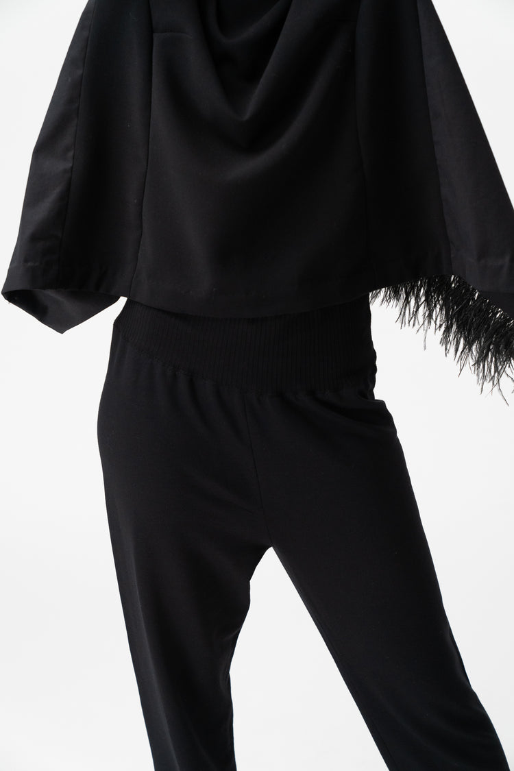 Knitted waistband or elastic approx. 5 cm wide, depending on the fabric