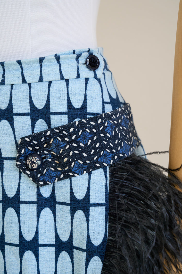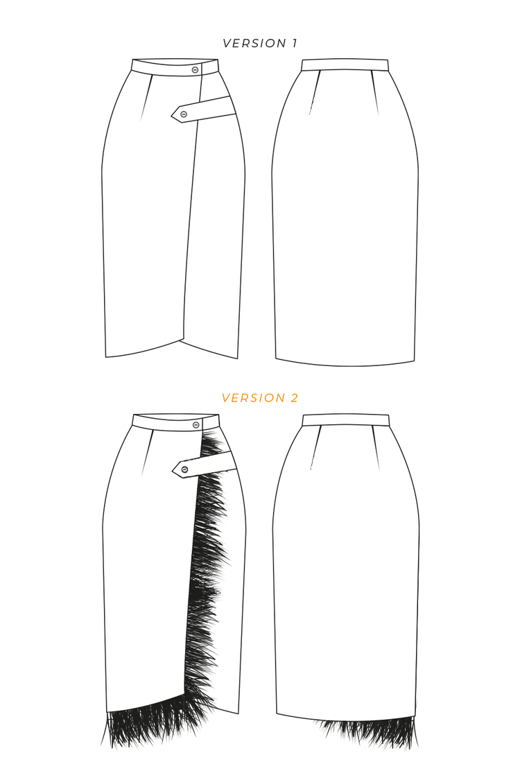 A truly eye-catching design with asymmetry, statement details, and two finishing options: the 28-5 ANGLED Skirt is a modern, fashion-forward piece that adds edge to your me-made wardrobe. Whether you opt for the minimalist buckle closure (Version 1) or the feather-trimmed version with full lining and button tab (Version 2), this pattern offers stylish versatility for intermediate sewists.