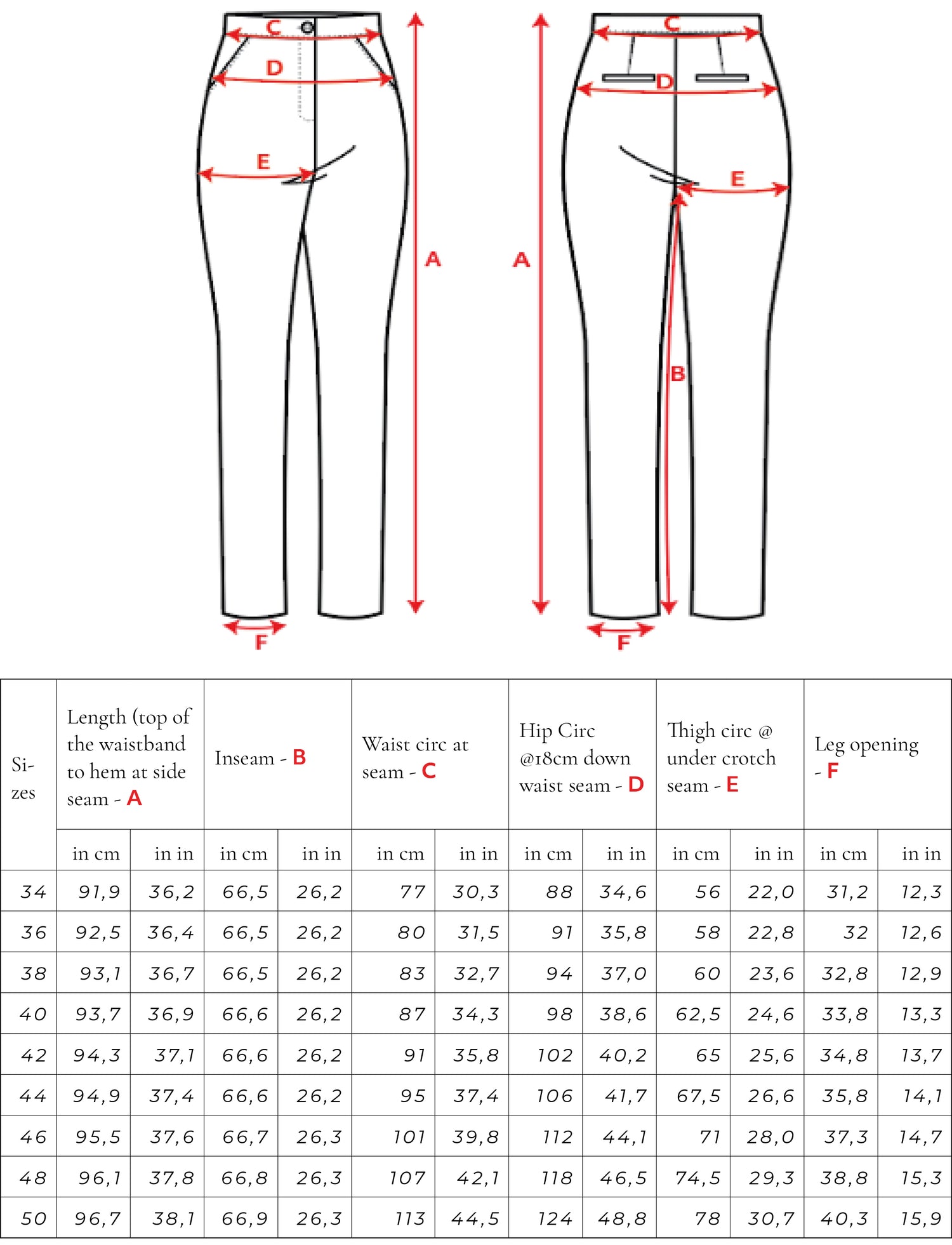 Size Chart for women clothing Size Chart Sizes 34-50 for sisterMAG Patterns