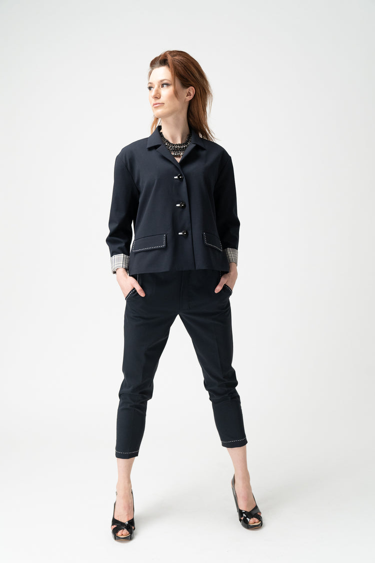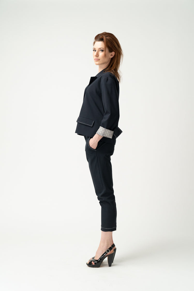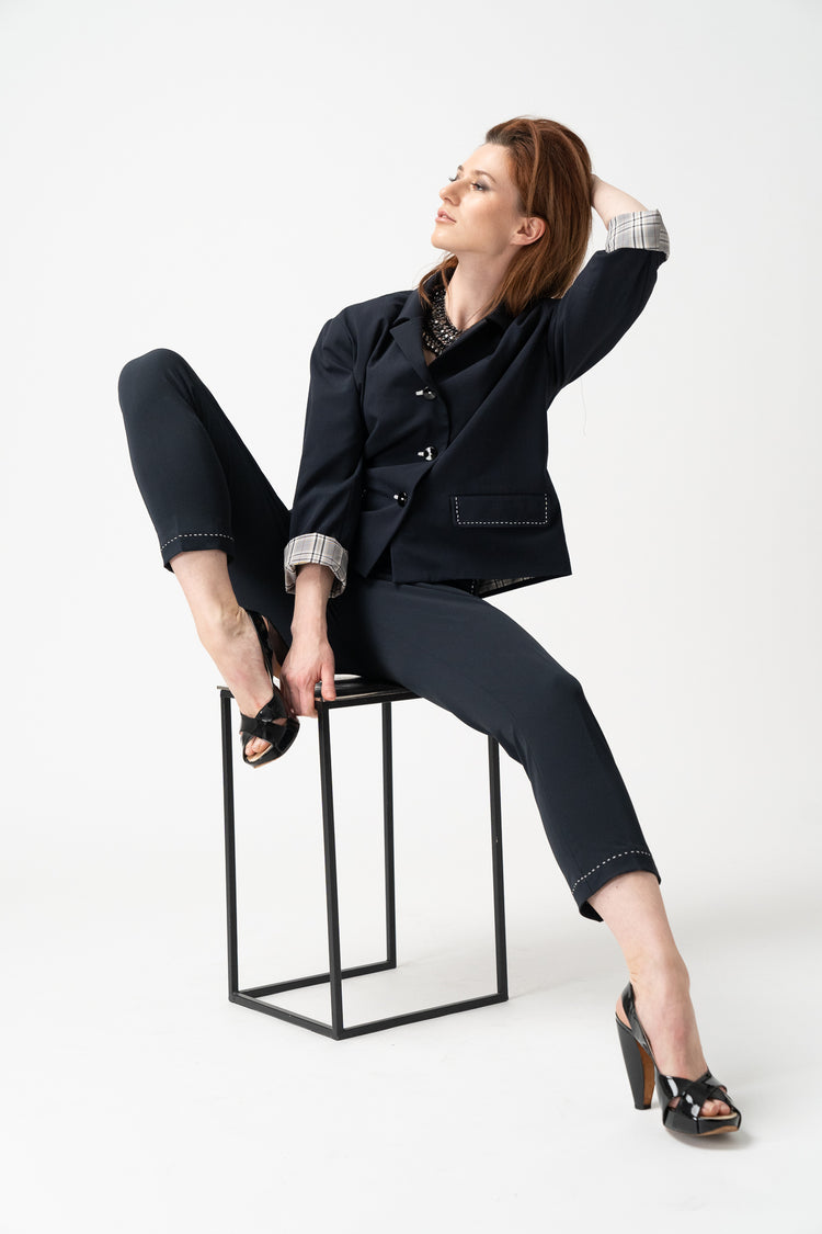 Welt and Slanted Pockets: Practical and stylish, perfect for a professional setting.