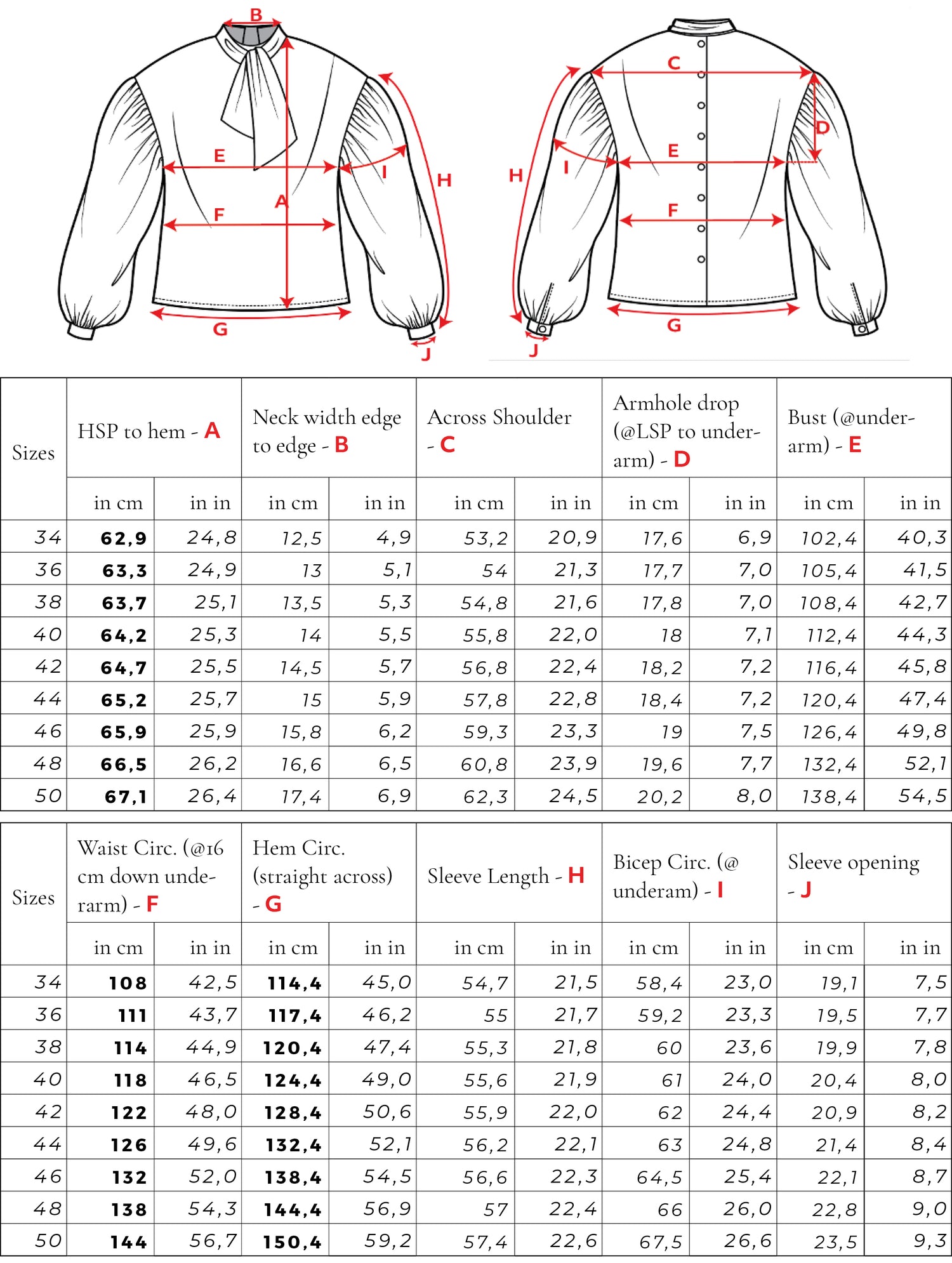 Size chartAs important as the right fabric: the fitting and finding the right size for your body shape. Check out our Size Chart to see which of the included sizes will fit you best.