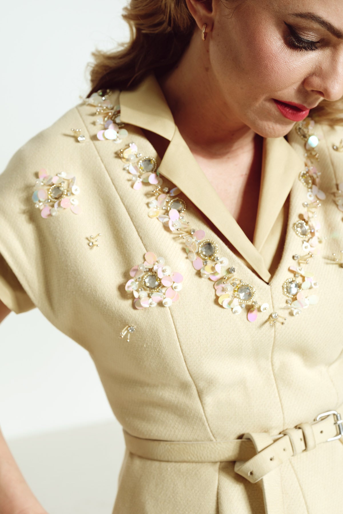 66-8 Floral bead embroidery tutorial for V-neck