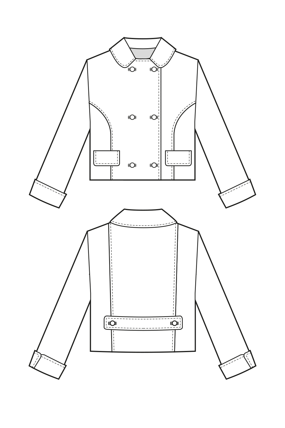 Timeless sophistication meets modern design in the 70-11 Short Double-Breasted Jacket sewing pattern. This chic jacket features a cropped length, double-breasted closure, and a stylish back tab detail, offering both structure and elegance. Its versatile design makes it ideal for layering over both casual and formal outfits, giving you a tailored yet contemporary look.
