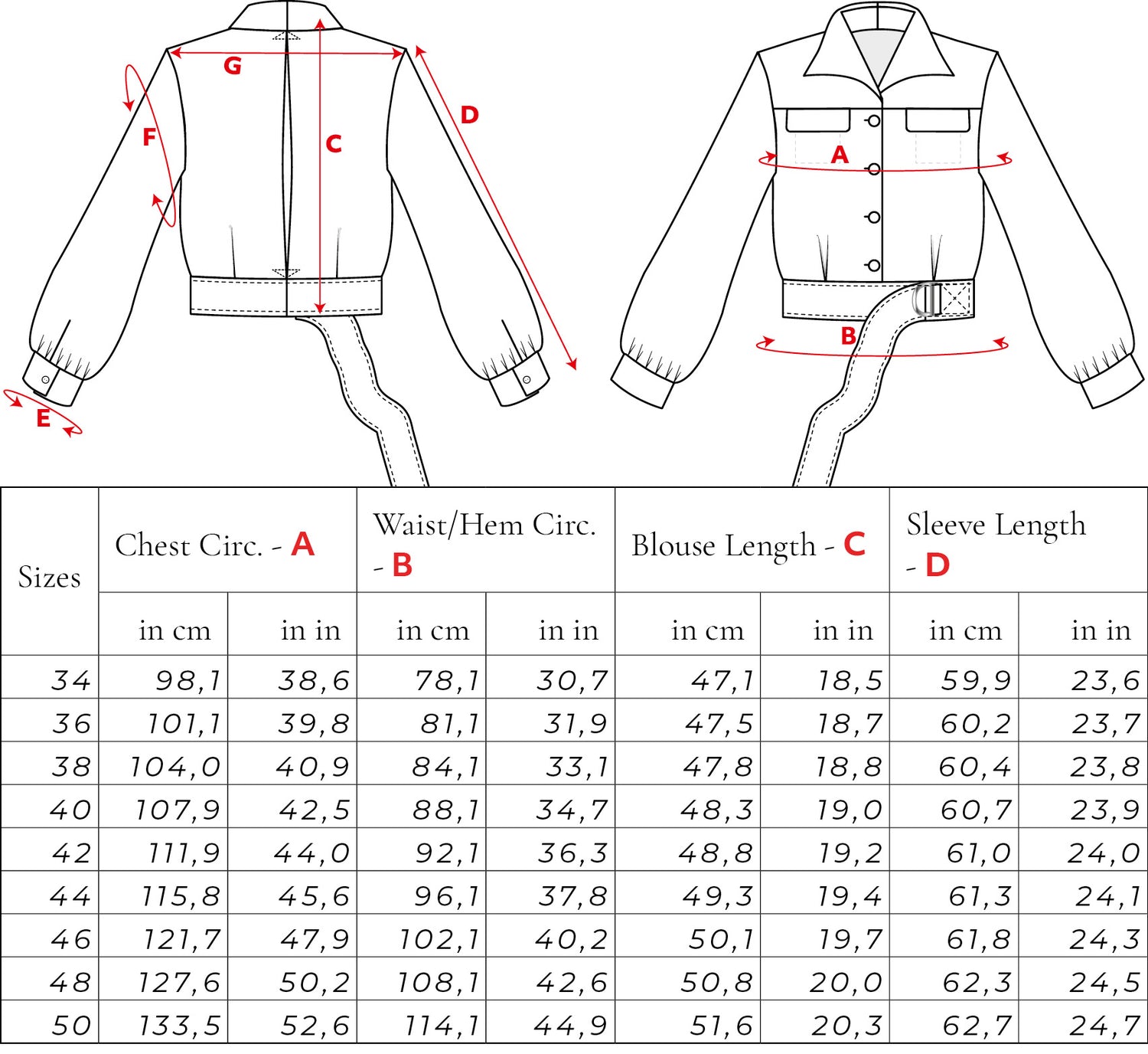 • Button Front Closure – Classic button placket down the front of the blouse, with button placement clearly marked.