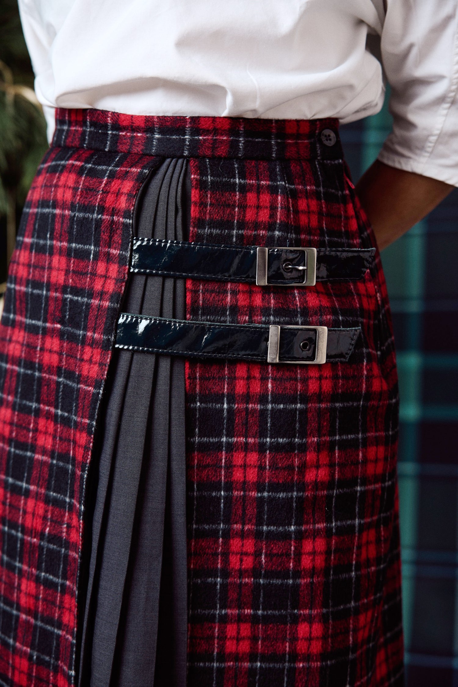 71-7 TARTAN Kilt-inspired skirt with two leather tabs