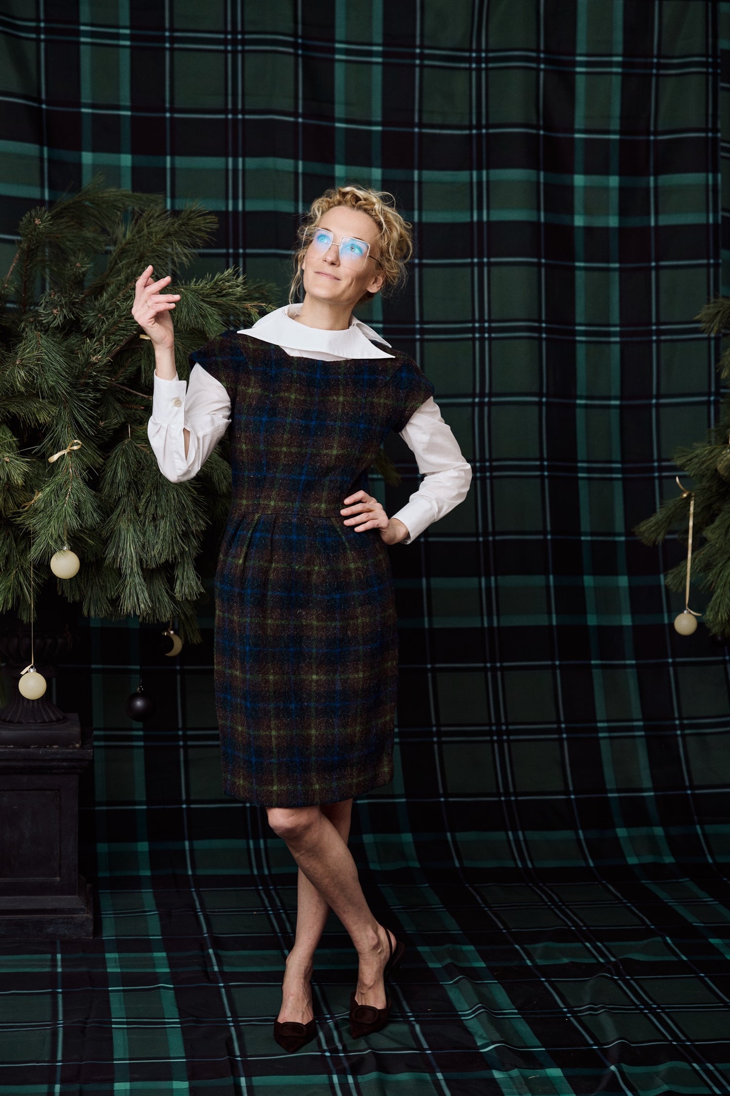 Elegant structure, precise fit – meet the ETUDE dress. With its sculpted bodice, built-in pleats at the waist, and an elegant slit in the back, this contour dress brings timeless tailoring to your handmade wardrobe. Whether worn solo or styled over a blouse as in our Christmas edition, ETUDE is a versatile piece that works for office, dinner, or festivities. The gusset construction at the armhole adds a couture touch that makes this project extra rewarding.